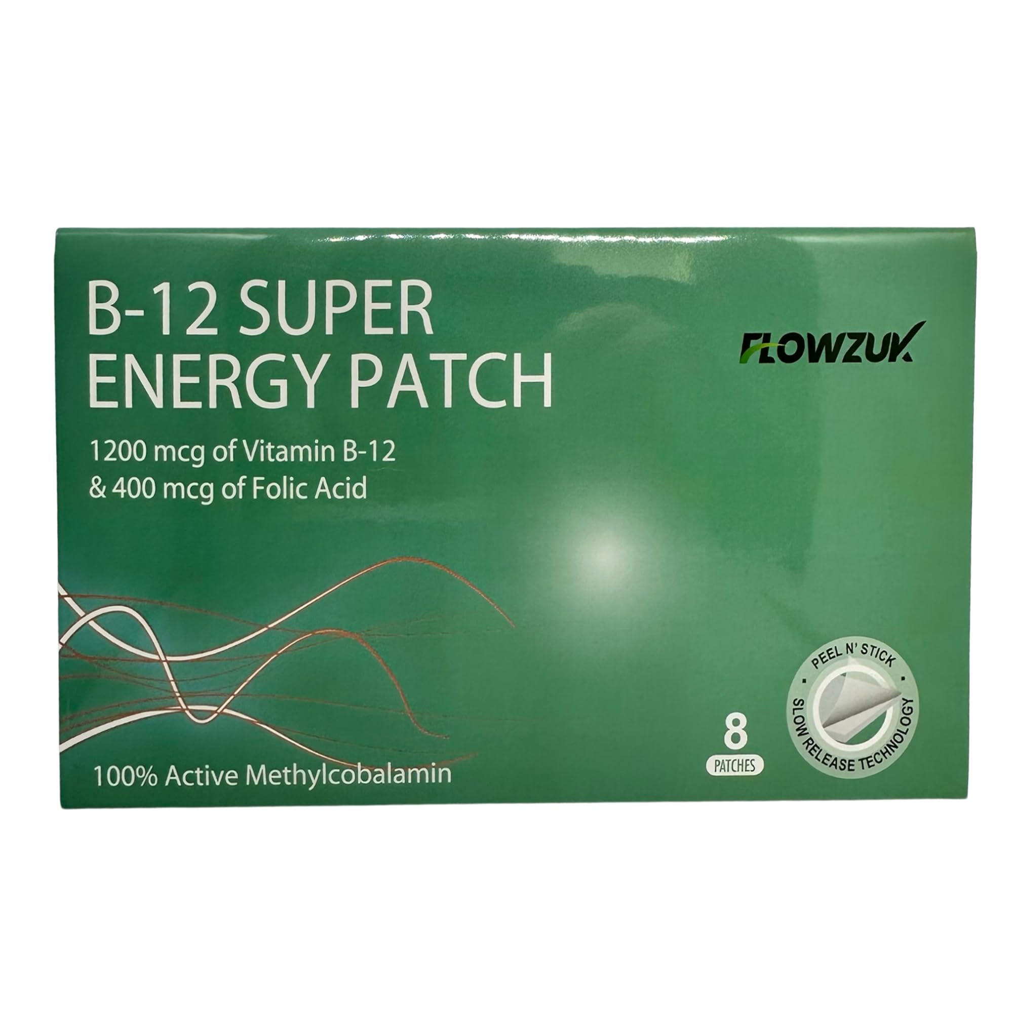 Transdermal Vitamin B12 Patches 1200 mcg and 400 mcg of Folic Acid -8 Patches 100% Methylcobalamin Active