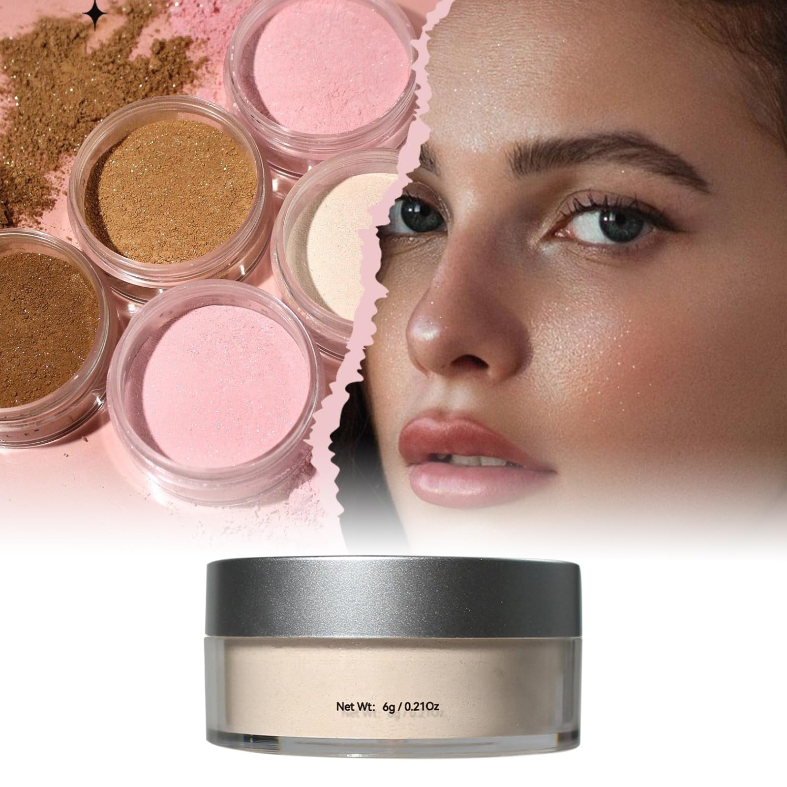 ???Welcome To Mubx Store??? ?Features? 1.Oil Control & Long Lasting: An easy-to-use loose powder to create a long-lasting complexion, and hold makeup in place all day long. The loose-setting powder helps to creat a refreshing makeup effect, , and sweatproof, with up to 16 hours of wear. 2.Face Powder: The setting powder is a finish with a micro flash. It shows a slight shimmering effect in the sunlight. The loose powder is suitable for daily use or party and it is also used for the body. 3.Lightweight & Ultra Fine: The loose finishing powder is ultra fine with no creg. This extremely light and silky texture blends seamlessly into the skin, leaving it a hint of sheen for a luminous finish that controls shine throughout the day. 4.Convenient To Use: The setting powder is easy to use thanks to its unique powder net, which disperses a controlled amount of powder. It helps illuminate and revitalize the look of your under-eye area, while also enhancing the of your face—in as little as a few minutes. The silky setting powder comes with a velour puff for easy travel and a major payoff. 5.Find Your Perfect Shade: The makeup powder has 4 colors to choose from, it is designed for a variety of skin tones such as light, medium, or deep skin types. powder is suitable for all skin types, oily, dry, combination, or normal skin types, find the foundation that makes you glow. ?? Material: Plastic Color: as the picture shows????Find Your Perfect Shade: The makeup powder has 4 colors to choose from, it is designed for a variety of skin tones such as light, medium, or deep skin types. Shimmer powder is suitable for all skin types, oily, dry, combination, or normal skin types, find the foundation that makes you glow. ????Convenient To Use: The setting powder is easy to use thanks to its unique powder net, which disperses a controlled amount of powder. It helps illuminate and revitalize the look of your under-eye area, while also enhancing the contours of your face—in as little as a few minutes. The silky setting powder comes with a velour puff for easy travel and a major payoff. ????Lightweight & Ultra Fine: The loose finishing powder is ultra fine with no creg. This extremely light and silky texture blends seamlessly into the skin, leaving it a hint of sheen for a luminous finish that controls shine throughout the day. ????Shimmer Face Powder: The setting powder is a shimmer finish with a micro flash. It shows a slight shimmering effect in the sunlight. The loose powder is suitable for daily use or party and it is also used for the body. ????Oil Control & Long Lasting: An easy-to-use loose powder to create a long-lasting complexion, and hold makeup in place all day long. The loose-setting powder helps to absorb excess oils, creating a refreshing makeup effect, waterproof, and sweatproof, with up to 16 hours of wear.