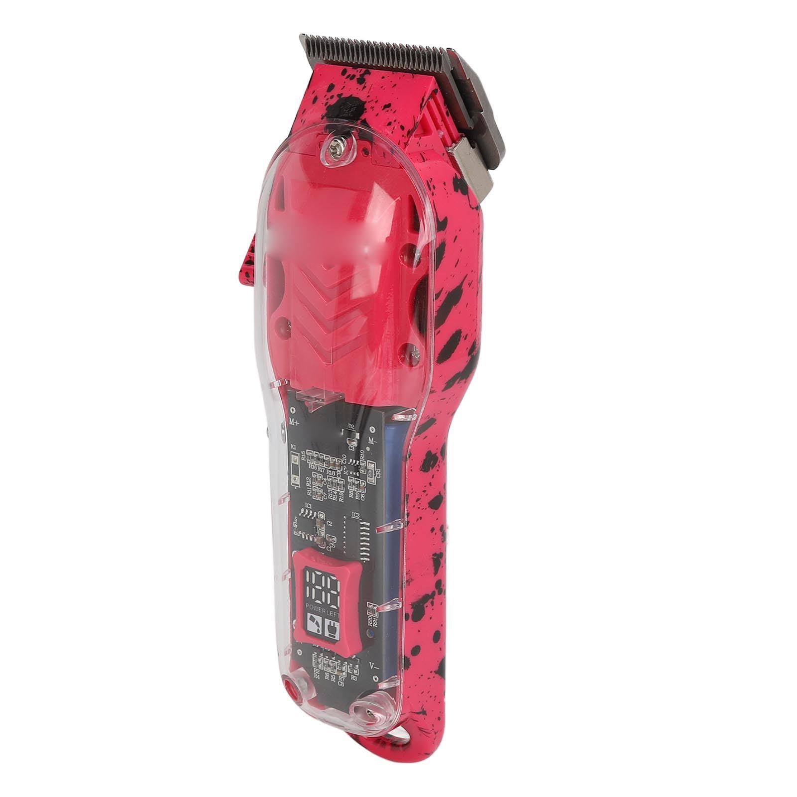 Transparent Mini Barber Clipper Professional Multi-Function Electric Hair Clipper Digital for Salon (Red)