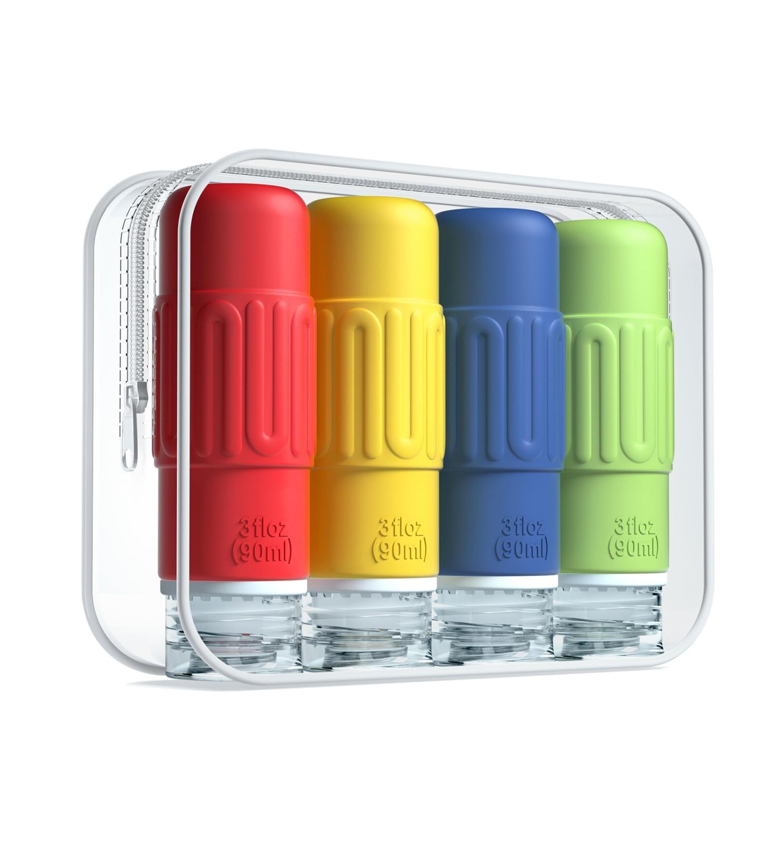 Squeeze and Bounce: Travel silicone bottle bounce back into shape after squeezing, ensuring durability and convenience during your journeys. The resilient silicone material allows for easy compression and immediate restoration, Enjoy the freedom of a squeezable and resilient silicone bottle, tailored for your travel convenience. Wide Opening Design: Our refillable travel bottles has a large opening, which can be easily filled with shampoo, conditioner or lotion and used, also it easily fits a brush to clean the inside of the bottel. Food Grade BPA Free Silicone: The travel toiletry bottles are made of high-quality BPA-free silicone, ensuring durability and safety for storing all types of liquids, including shampoo, conditioner, lotion, is the perfect travel essential. TSA Approved: Each travel bottle is TSA approved at 3oz, making it the ideal size for luggage. very suitable for shampoo, conditioner, shower gel, lotion, hand sanitizer and shower gel , Additionally, our travel size toiletries kit comes with a TSA-approved toiletry bag for easy storage and transportation. Leakproof Travel Essentials: The travel bottles for toiletries boast a three-layer leak proof desig,leak-resistant design that ensures your liquids stay safely contained during transit. Firmly sealed to provide protection for your luggage and clothing without causing confusion.
