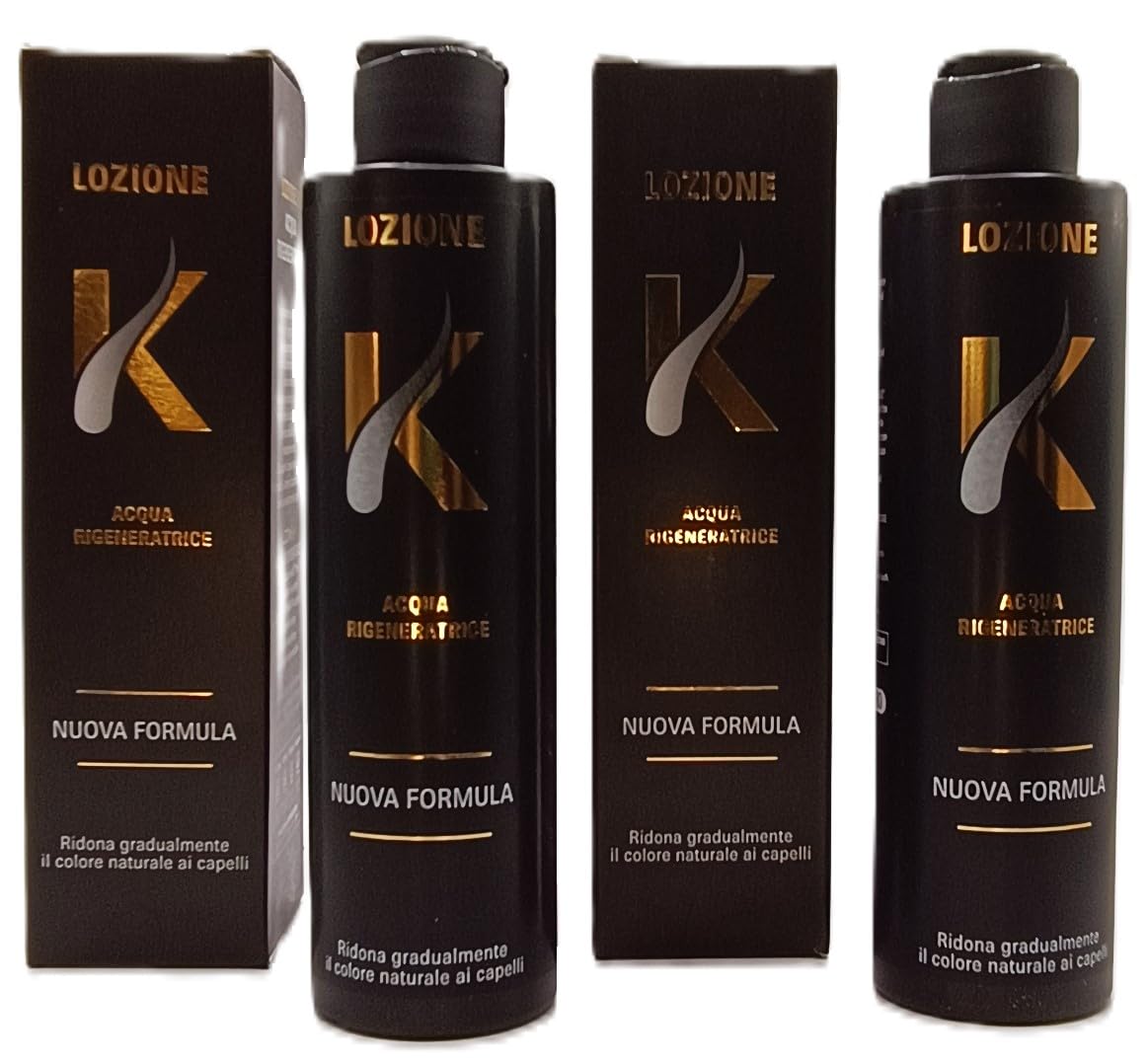 Lotion K, improved formula, is a unisex cosmetic treatment to restore hair to its natural color in just a few weeks of application, without coloring or adding to the hair. The new formula, introduced in 2021, guarantees excellent results from the first week of application, thus reducing the formation of toxins. Apply by pouring 10-15 drops of lotion into the palm of your hand, then moisten the hair (it is recommended that it be clean or lightly washed) in the desired area, gently rubbing it in and allowing it to dry naturally without using any tools other than a comb or brush. The treatment should be repeated 2-3 times a day for 16-18 days then, once the hair has regained its natural color, simply apply a few drops 2-3 times a week. : variance due to individual factors. Introduced to the market about ten years ago, Lotion K enjoys unanimous and enthusiastic praise from thousands of customers, including professionals. Lotion K is a water-based solution that requires no special safety precautions, only simple guidelines such as: "Keep out of reach of children, avoid contact with eyes, wash hands after use, do not use to dye eyelashes, eyebrows, or mustaches (to avoid the risk of eye irritation), discontinue use if skin irritation occurs." INGREDIENTS Denatured ethyl alcohol - bismulle citrine - sulfurExcellent treatment. Results start to show within the first week. Extremely easy and quick to apply, without a brush or any other tools. Gradually restores natural color in a few weeks, without dye or oil. Unisex DIY cosmetic treatment in a 150ml bottle that eliminates white and gray hair.STOP cheveux blancs et gris - Lotion K formule renforcée Kit de 2 flacons de 150 mlDESCRIPTION DU PRODUIT DESCRIPTION DU PRODUIT Lotion K formule améliorée est un traitement cosmétique UNISEX pour redonner aux cheveux leur couleur naturelle en quelques semaines d'application, sans colorer et ajouter aux cheveux. La nouvelle formule introduite en 2021 garantit un excellent résultat dès la première semaine d'application, réduisant ainsi la formation de forphère. Il s'applique en versant 10 15 gouttes de lotion sur la paume d'une main, avec laquelle mouiller les cheveux (il est recommandé qu'ils soient propres ou lavés à peu) de la zone souhaitée, en les frottant délicatement et en les laissant sécher naturellement sans utiliser d'outils en plus du peigne ou de la brosse. Le traitement doit être répété 2 3 fois par jour pendant les 16 18 jours ensuite, dès que les cheveux auront repris leur couleur naturelle, il suffit d'appliquer quelques gouttes 2 3 fois par semaine. : variance pour facteurs individuels. Introduite sur le marché il y a une dizaine d'années, Lotion K bénéficie d'un consensus unanime et enthousiaste de milliers de clients, y compris au niveau professionnel. Lotion K est une solution à base d'eau qui ne requiert pas de mesures de sécurité particulières, si pas de simples précautions telles que : « Tenir hors de portée des enfants, éviter le contact de la substance avec les yeux, laver les mains après utilisation, ne pas utiliser pour teindre les cils, les sourcils et les moustaches (pour éviter le risque que les yeux ) interrompre l'utilisation en cas d'irritation de la peau ». INGRÉDIENTS Alcool éthylique dénaturé - citrine de bismule - soufreTrès bon traitement. Les résultats commencent à voir dès la première semaine. Extrêmement facile et rapide d'application, sans pinceau ni autres outils. Restaure progressivement la couleur naturelle en quelques semaines, sans colorier ni graisse. Traitement cosmétique unisexe « DIY » en flacon de 150 ml qui élimine le blanc et le gris des cheveux.