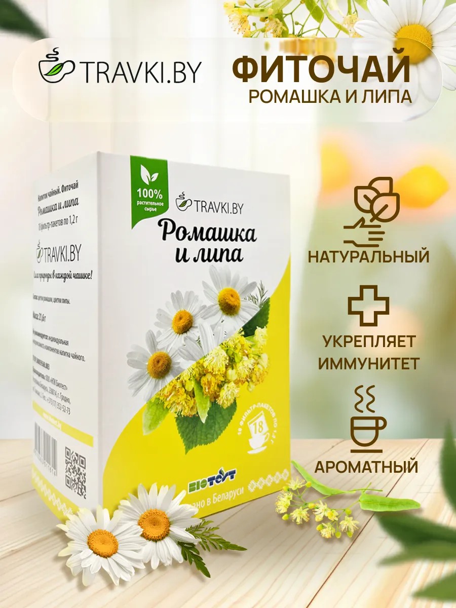 TRAVKIBY Ромашка и Липа. Фито-чай фильтр-пакеты 1,2 г №18