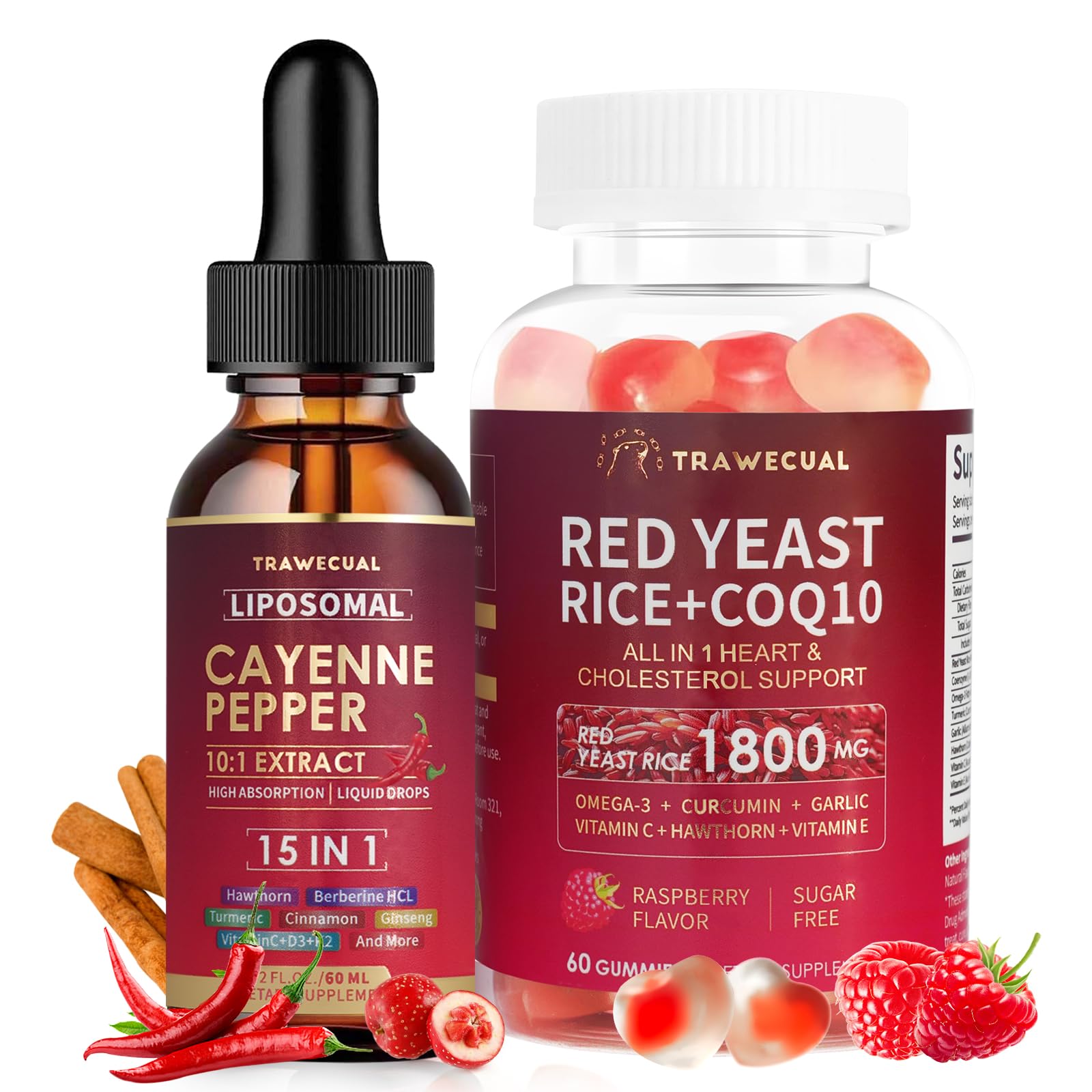Trawecual Red Yeast Rice Gummies & Liposomal Cayenne Pepper Drops Supplement Bundle