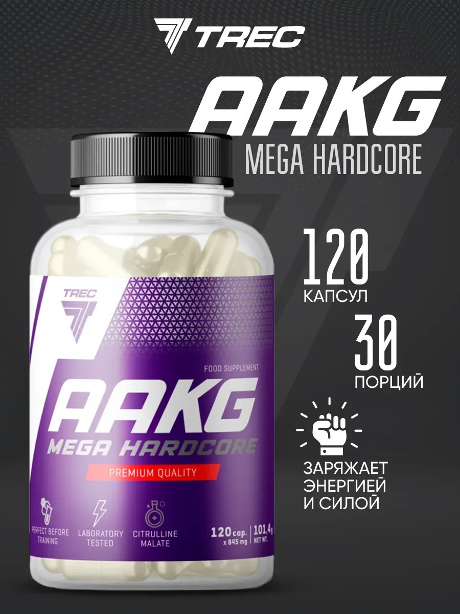 | Комплектация | аргинин 120 капсул; Trec Nutrition AAKG MEGA HARDCORE 120cap |