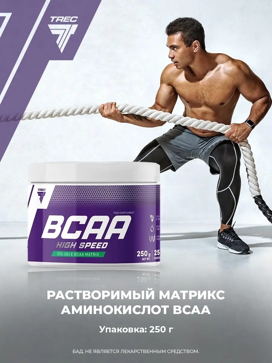 Аминокислотный комплекс BCAA High Speed от Trec Nutrition с лейцином, изолейцином и валином создан специально для спортсменов в период интенсивных тренировок. Обладает мощным антикатаболическим эффектом (защищает мышцы от разрушения), помогает нарастить объемы сухой мышечной массы, снижает удельный вес жира в организме, а также увеличивает показатели силы и эффект от употребления спортпита на 40%. Эта пищевая добавка помогает сжигать жир быстро и эффективно,трансформируя его в энергию и выносливость, при этом сохраняя ткани. Одноразовую порцию препарата - 10 г (2 мерные ложки) растворить в 300 мл воды, используя для этого шейкер. В зависимости от необходимости следует употреблять 1-2 порции в день.