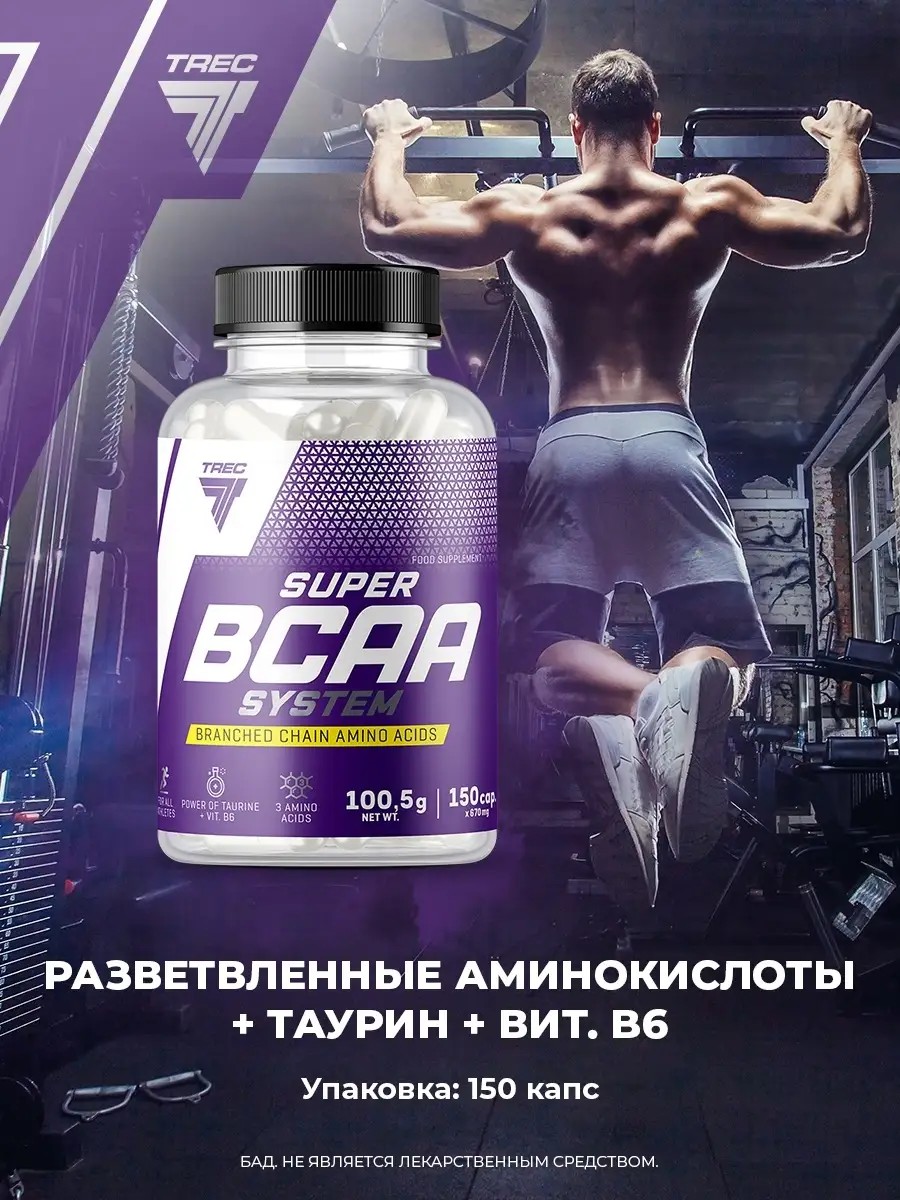 SUPER BCAA System - это изолейцин, лейцин и валин в оптимальной концентрации. Добавка стимулирует повышенный рост мышечной массы, активизирует силы и увеличивает работоспособность. Комплекс аминокислот BCAA от Trec Nutrition дополнительно обогащен витамином B6 и таурином, которые улучшат усвоение основных компонентов и усилят эффект от тренировки в разы. Также регулярный прием препарата позволит значительно снизить катаболизм, ускорит восстановление, уменьшит боли и отечность после интенсивных занятий спортом.Разветвленные аминокислоты BCAA составляют 40% мышечной ткани, поэтому чтобы восполнить запас необходимых организму веществ, уменьшить появления распада и ускорить синтез белка нужно систематически принимать качественные добавки с аминокислотами в составе.