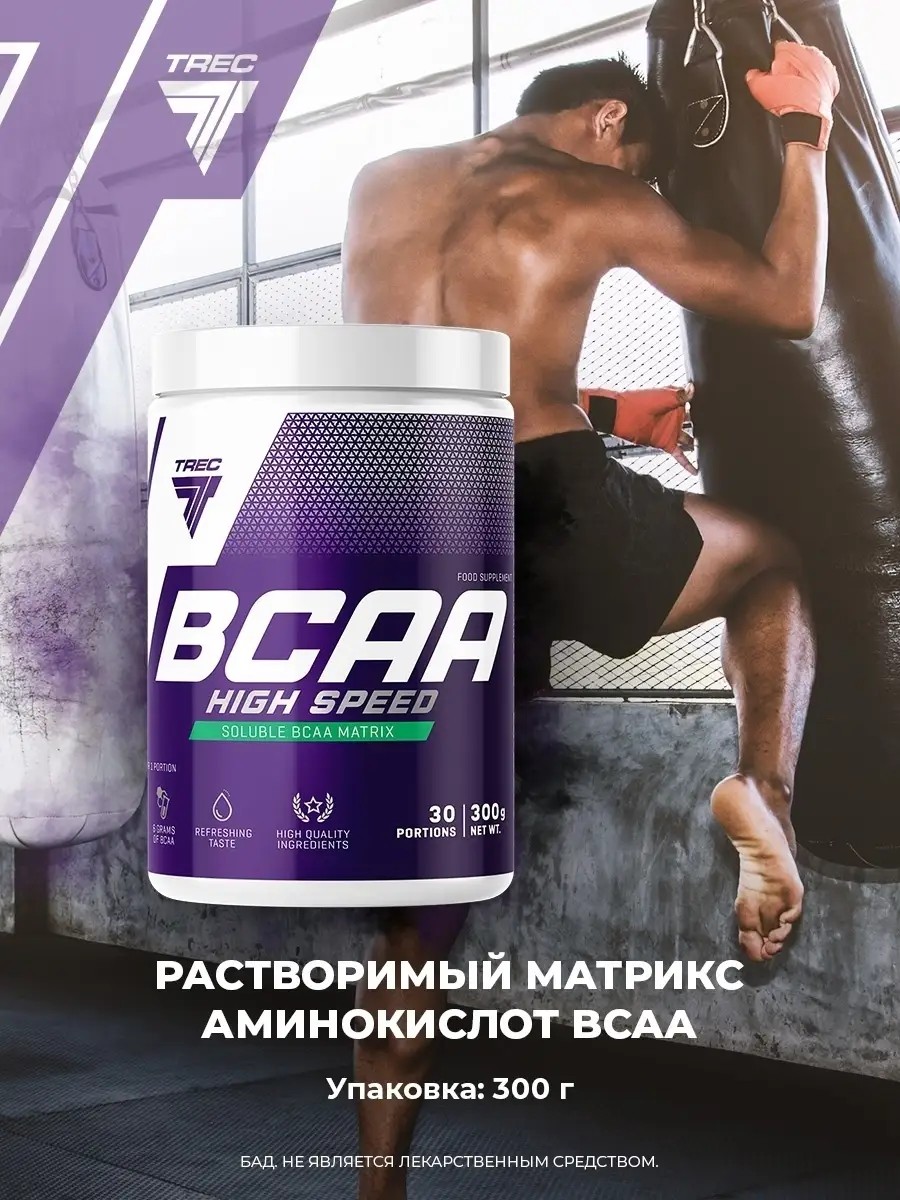 BCAA High Speed от Trec Nutrition помогает сохранять нужный темп жиросжигания, когда жировая ткань расходуется для воспроизводства необходимой спортсмену энергии и при этом ценные мышечные волокна остаются нетронутыми.- Обладает антикатаболическим эффектом (защищает мышцы от разрушения)- Помогает нарастить объемы сухой мышечной массы- Снижает удельный вес жира в организме- Увеличивает силовые показатели- Увеличивает эффект от употребления спортпита на 40%.Пора забыть об усталости и выйти на новый для себя уровень тренированности. Благодаря современному аминокислотному препарату BCAA High Speed ваши базовые показатели будут расти в любой дисциплине, где крайне необходима предельная выносливость и сила, а также высоко ценится качество набранной мышечной массы.Состав данного комплекса не имеет недостатков и позволяет достичь успеха в рекордные сроки. Докажите свою состоятельность в спорте не прибегая к опасным и запрещенным веществам!