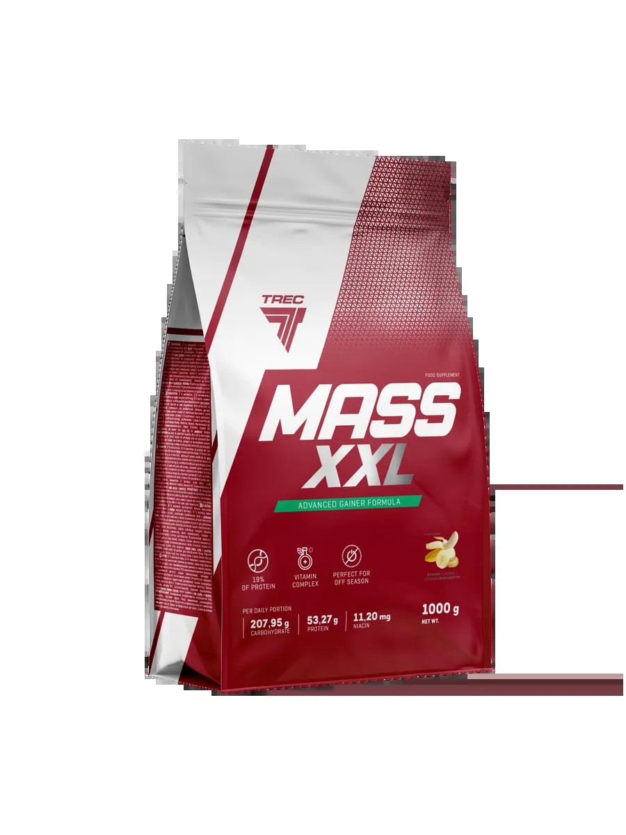 Trec Nutrition MASS XXL GAINER 1000g — Высококалорийный гейнер для быстрого набора массы : Trec Nutrition MASS XXL — это мощный гейнер из Польши, созданный специально для тех, кто стремится набрать мышечную массу и восстановить силы после интенсивных тренировок. Продукт содержит сбалансированную комбинацию высококачественного белка, углеводов и креатина, что делает его отличным выбором для спортсменов и тех, кто активно работает над улучшением физической формы.