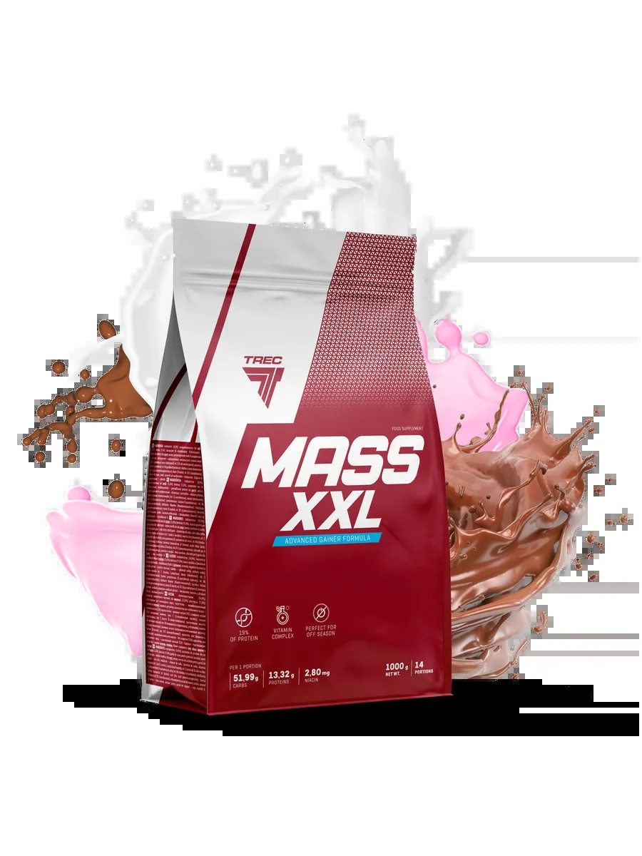Trec Nutrition MASS XXL GAINER 1000g — Высококалорийный гейнер для быстрого набора массы : Trec Nutrition MASS XXL — это мощный гейнер из Польши, созданный специально для тех, кто стремится набрать мышечную массу и восстановить силы после интенсивных тренировок. Продукт содержит сбалансированную комбинацию высококачественного белка, углеводов и креатина, что делает его отличным выбором для спортсменов и тех, кто активно работает над улучшением физической формы.