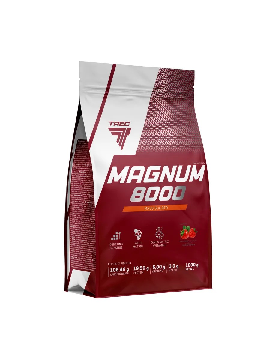 Trec Nutrition MAGNUM 8000, 1000 g - High-calorie gainer for rapid mass gain : Trec Nutrition MAGNUM 8000 is a powerful gainer from Poland, created specifically for those who want to gain muscle mass and recover strength after intense training.