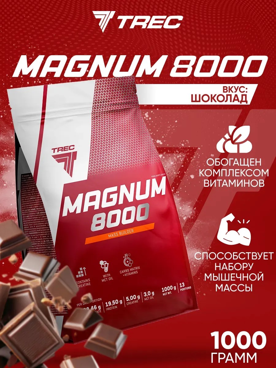 MAGNUM 8000 от Trec Nutrition - это активный питательный концентрат, разработанный специально для культуристов, спортсменов силовых видов спорта и физически активных людей, которые стремятся к быстрому приросту массы тела.