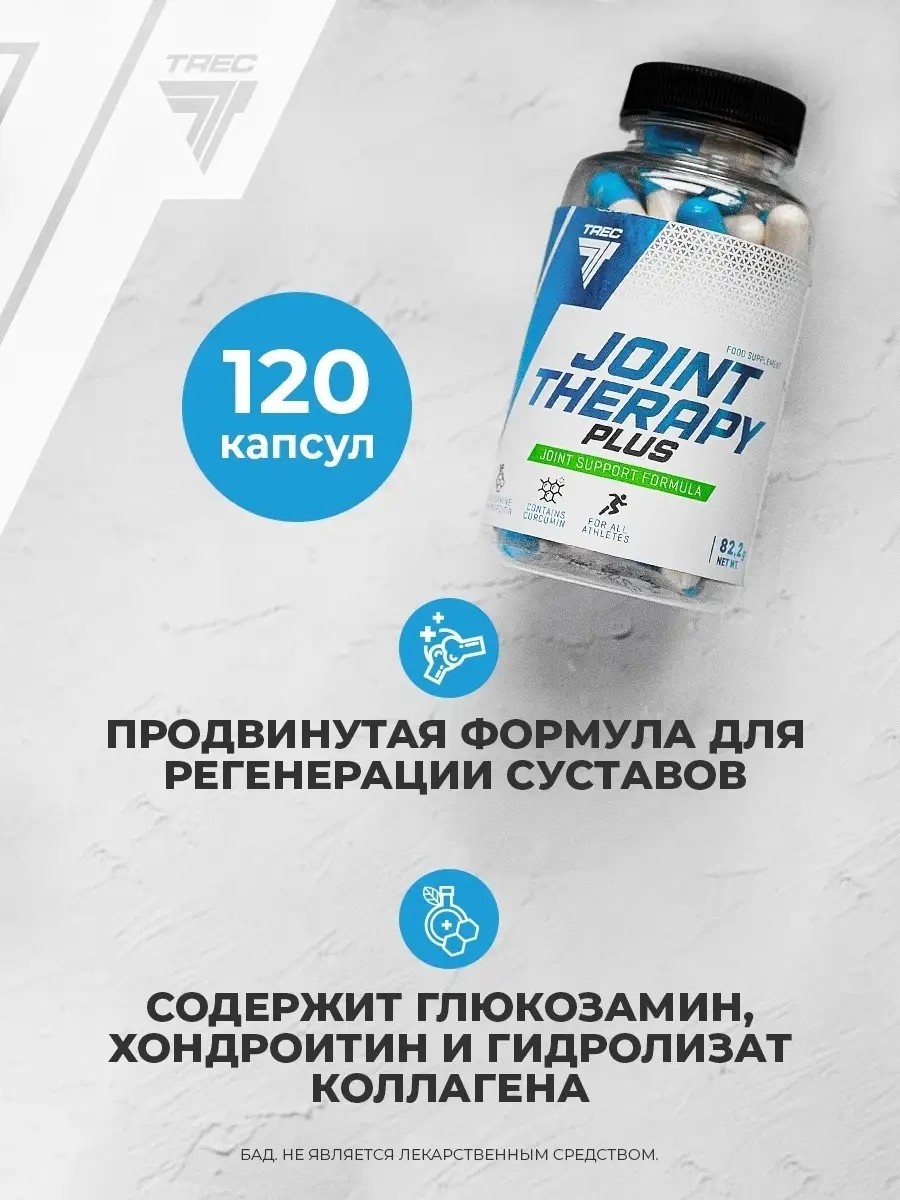 Комплексная добавка для укрепления суставов, связок и суставных сумок. Максимально эффективна при повреждениях и износе суставов в результате интенсивных тренировок, при избыточном весе, в процессе старения или при патологиях, которые возникли в результате неправильного лечения. В Joint Therapy Plus в грамотных пропорциях сочетаются глюкозамин, MSM, хондроитин, коллаген и лечебные растительные экстракты, которые укрепят суставную систему и запустят процесс регенерации.Joint Therapy Plus рекомендуется людям, которые выполняют интенсивные упражнения, чувствуют дискомфорт в результате неправильного функционирования суставов. Принимать по по 1 капсуле 3 раза в день после еды, запивая 300 мл