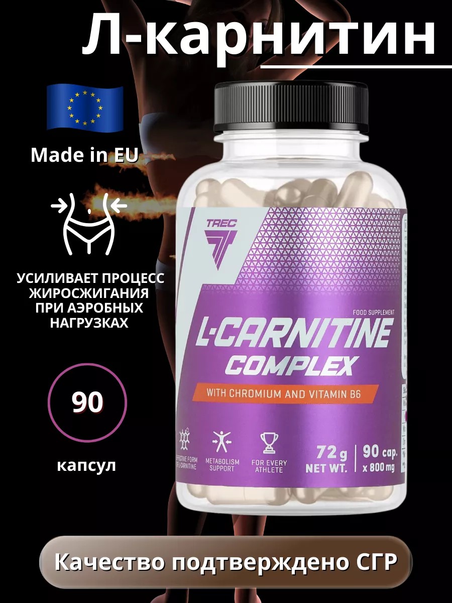 Л-карнитин от Трек в капсулах. Европейское качество, производственный цикл происходит в Европе, с соблюдением всех международных требований и стандартов качества. Страна производства Польша. L-карнитин - естественное витаминно-подобное вещество, которое выполняет ключевую роль в энергетических процессах организма. Прием L-карнитина перед аэробными нагрузками, увеличивает выработку энергии из жиров, увеличивает работоспособность организма, препятствует появлению усталости и придает возможность ускорить процесс сжигания жировой ткани. L-Carnitine Complex содержит виниал Л-карнитин, хром и витамин В6. Эти компоненты увеличивают участие жира в производстве энергии, регулируют уровень сахара в крови и уменьшают аппетит, тем самым, способствуя уменьшению лишней жировой ткани. Комплекс имеет также энергетическое действие и препятствует появлению усталости в ходе продолжительных тренировок. L-Carnitine Complex облегчает контроль массы тела, ускоряет сжигание жира, увеличивает работоспособность интенсивно тренирующихся спортсменов и физически активных лиц.