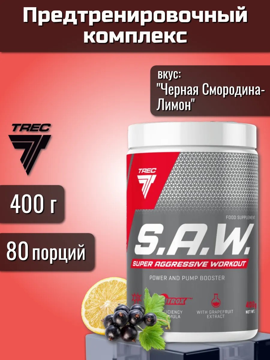 | Полное наименование товара | Предтренировочный комплекс Trec Nutrition S.A.W. 400 г, вкус "Черная Смородина-Лимон" |