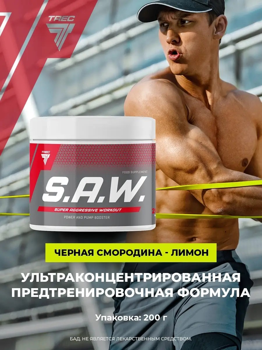 S.A.W. (SAW) суперконцентрированная предтренировочная формула, предназначенная для профессионалов. Препарат обладает сильным анаболическим действием и стимулирует ускоренный рост работающих мышц. S.A.W. обеспечивает им дополнительное снабжение кислородом и питание.Уникальный комплекс бета-аланина и активных нейростимуляторов повышает выносливость и концентрацию, увеличивает энергетические ресурсы организма, а также улучшает работоспособность организма во время тяжелых физических нагрузок. Препарат противодействует преждевременной усталости и чрезмерному закисанию тканей.В зависимости от необходимости, интенсивности нагрузки и чувствительности к действию препарата, необходимо растворить от 5-15 г концентрата (1-3 мерных ложки) в 100-200 мл воды, используя для этого шейкер.