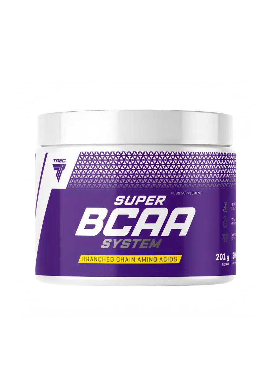 Trec Nutrition SUPER BCAA SYSTEM — это пищевая добавка, разработанная для поддержки спортсменов и активных людей. Она содержит аминокислоты с разветвлённой цепью (BCAA) — лейцин, изолейцин и валин — в оптимальном соотношении, обогащённые таурином и витамином B6.