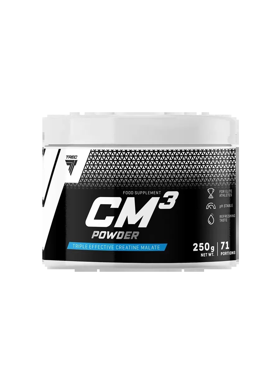 Trec Nutrition CM3 POWDER Tricreatine Malate 250g 70 serv (TriCreatine Malate) is one of the most highly absorbable forms of creatine.