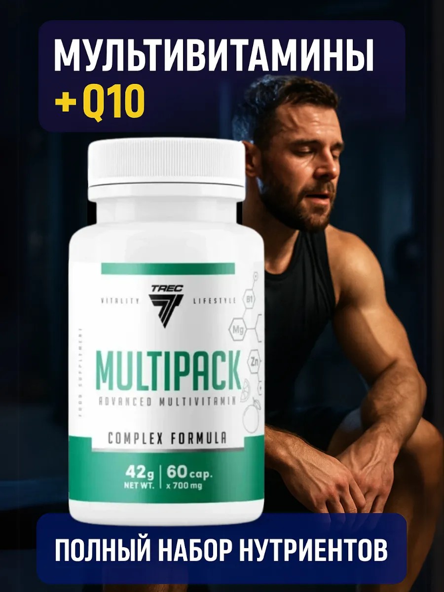 TREC MULTIPACK — это инвестиция в Ваше здоровье, красоту и долголетие. Каждая капсула содержит научно обоснованные дозировки, обеспечивающие максимальную биодоступность и эффективность. Для роста мышечной массы, поддержания здоровья зубов, защиты печени — этот мульти витаминно-минеральный комплекс покрывает все потребности активного организма.