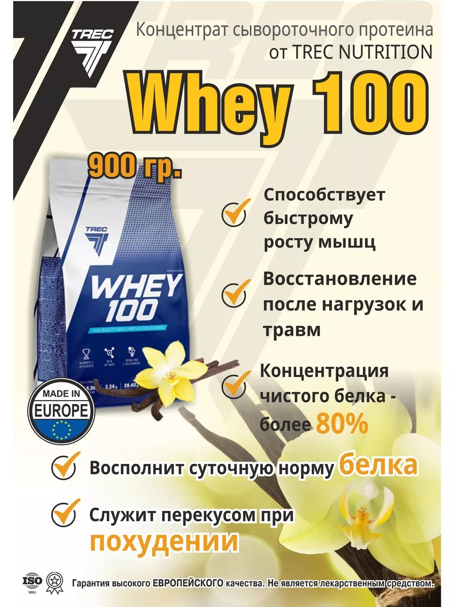 Польский протеин WHEY100% (ВКУС - не приторный) от компании Trec nutrition - полностью состоит из чистого высококачественного концентрата белка сыворотки (концентрация чистого белка-более 80%, который является превосходным источником полноценных животных протеинов. В состав входит исключительно сывороточный белок, без примесей, снижающих содержание протеина в продукте. Концентрат сывороточного белка - это один из наиболее популярных и эффективных протеинов природного происхождения. Продукт идеально компенсирует недостаток белка, при повышенной потребности организма у людей, занимающихся профессиональным спортом, культуризмом, ведущих активный образ жизни, а также у людей, находящихся на диете для похудения. Сывороточный белок легко усваивается организмом. Так как этот белок переваривается и усваивается крайне быстро, то наиболее важные анаболические аминокислоты мгновенно поступают в мышцы. Исключительно очень высокое содержание быстроусвояемого Л-лейцина инициирует анаболические процессы. WHEY100% правильный выбор!