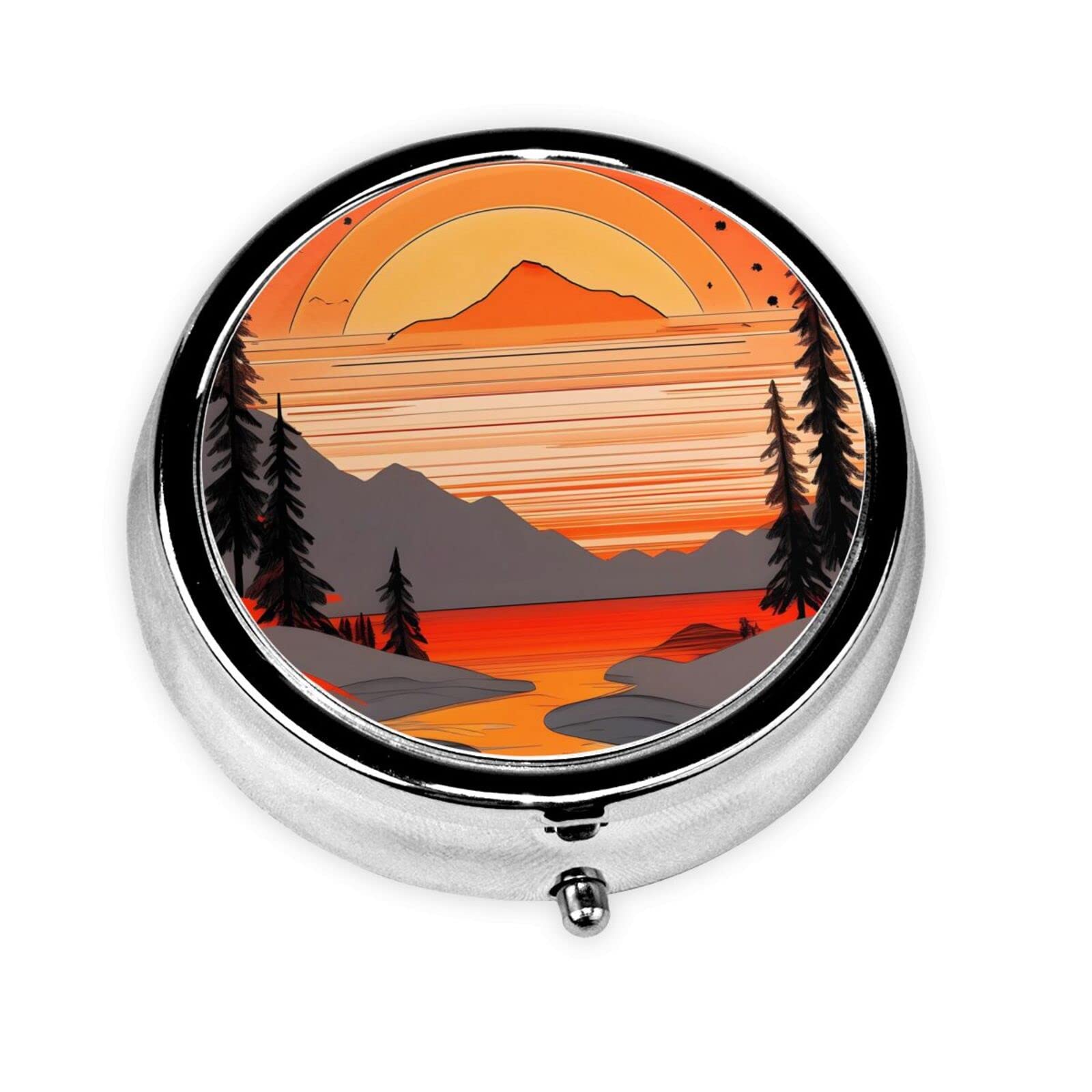 Tree Hills And Rivers Round Mini Pill Box : Our Pill Box Is Made Of Metal Plated With Iron To Resist Daily Wear And Tear And Prolong Its Life.2.0 X 2.0 X 0.7 Inches (Approx. 4.6 X 4.6 X 1.8 Centimeters), This Round Mini Pill Box Is Compact And Lightweight^, With 3 Plastic Compartments And A Hinged Closure Inside. The Round Mini Pill Box Takes Up Little Space And Can Be Carried In Your Pocket Or Purse, Perfect For Traveling.