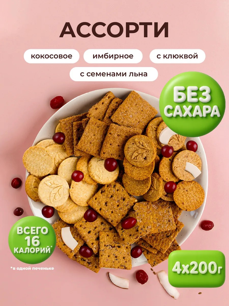 Новинка! Всеми любимое печенья без сахара 800 г теперь в формате АССОРТИ (кокосовое 200гр, имбирное 200гр, ягодное 200гр, с семенами льна 200гр) - идеальный вариант сладости для детей и взрослых, следящих за правильным и здоровым питанием. Эти лакомства являются полезным дополнением к вашему рациону и прекрасным выбором для детского перекуса в школу, садик. В составе наших сладостей только натуральные ингредиенты. Эти маленькие угощения, которые не содержат яиц, сахара и сахарозаменителей, без молока. Диетическое печенье ягодный вкус по своей структуре рассыпчатое, нежно тает во рту, а с семенами льна - как хлебцы без сахара или хрустящий крекер. Диабетическое печенье богато витаминами. Пп печенье источник дополнительной энергии и сил. Эта полезная вкусная еда также идеально подходит для веганов и вегетарианцев. Веган сладости подойдут для кето диеты и для диабетиков. Наши изделия без консервантов и красителей, безглютеновые (лишь содержат следы глютена). Кондитерский десерт без сахара имеет невысокую калорийность. Печенье может содержать следы орехов, арахиса, сои, сельдерея, горчицы. ПП продукты подойдут для похудения и любителям ЗОЖ. Фитнес печеньки - источник сложных углеводов, рекомендованы в пост, для спортивного и диетического питания. Завтрак будет разнообразным и низкокалорийным - полезным для здоровья. Попробуйте наши протеиновые печенья уже сегодня и откройте для себя новый уровень полезного перекуса. Вкусняшки обеспечат всю семью, безопасным и питательным угощением к кофе и чаю. Ваша семья и близкие будут в восторге от каждого кусочка!