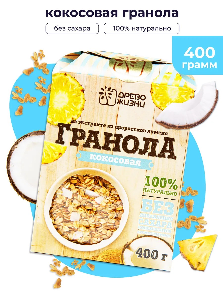 Древо жизни представляет гранолу весом 400 гр, со вкусом кокоса и ананаса без добавленного сахара это натуральный и полезный продукт, который идеально подходит для людей, ведущих здоровый образ жизни и следящих за своим питанием. Гранола без сахара изготавливается из цельно зерновых ингредиентов, таких как хлопья, семена и сухофрукты. Фитнес мюсли не содержат сахар, что делает ее идеальным выбором для диетического питания, постных дней, кето диеты и для людей, страдающих диабетом. Также эта гранола является отличным источником белка, что делает ее идеальным продуктом для спортсменов, вегетарианцев и веганов. Запечённая гранола без сахара имеет хрустящую текстуру и вкусные вкусовые комбинации, которые делают ее привлекательной для всех возрастных групп. Она приносит ощущение сытости и дает дополнительную энергию и силу, что особенно важно для туристов и активных людей. Гранола изготовлена без использования пальмового масла, консервантов, красителей, не содержит ГМО и холестерина. Более того, этот пп продукт не содержит консервантов и красителей, что делает ее еще более здоровой и диетической. Гранола без сахара также имеет дополнительное преимущество - она богата витаминами и минералами, которые способствуют общему укреплению иммунитета. Она может быть употреблена в качестве десерта, готового перекуса или полезного завтрака для детей и взрослых. В целом, протеиновая гранола без сахара — это здоровый и полезный продукт, который помогает поддерживать правильное и сбалансированное питание. Она предоставляет организму необходимые питательные вещества и энергию, что делает ее идеальным выбором для всей семьи, следим за своим здоровьем и состоянием фигуры. С любовью бренд Древо Жизни Сладень.