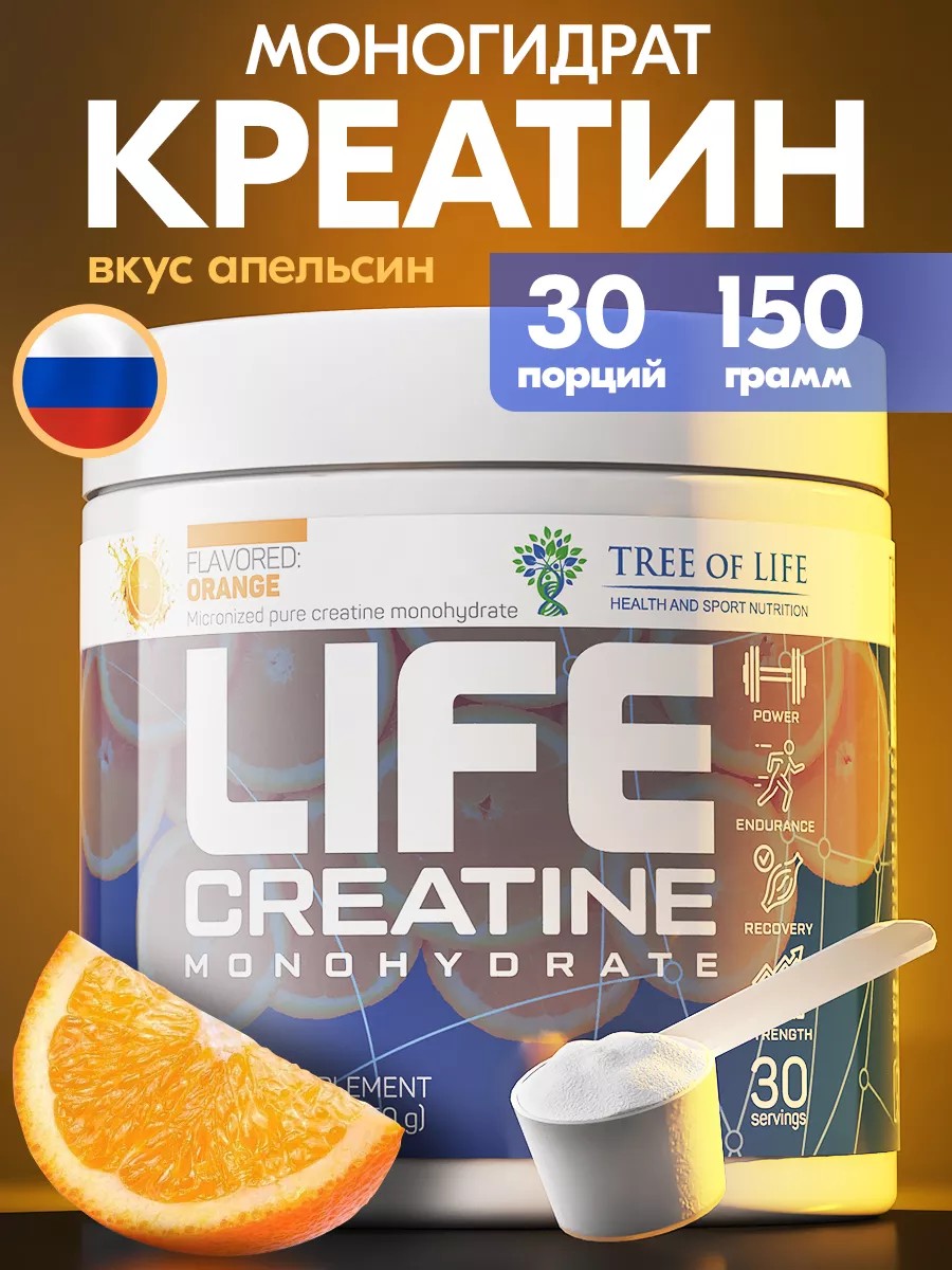 Креатин моногидрат 150гр или 30 порций с цитрусовым вкусом Апельсин. Ваш источник энергии для тренировок!