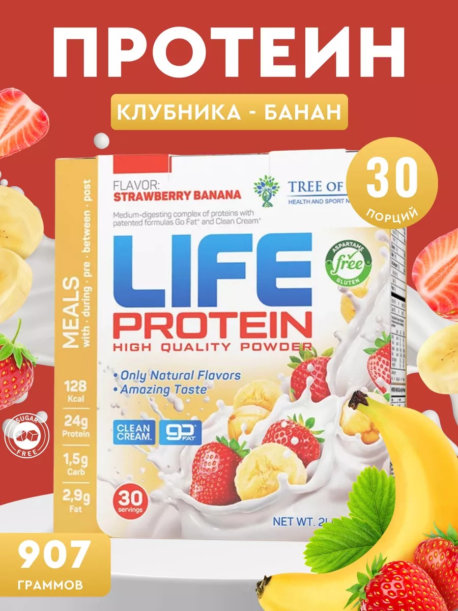 | Комплектация | Протеин 30 порций; Life protein; вкус клубника банан |