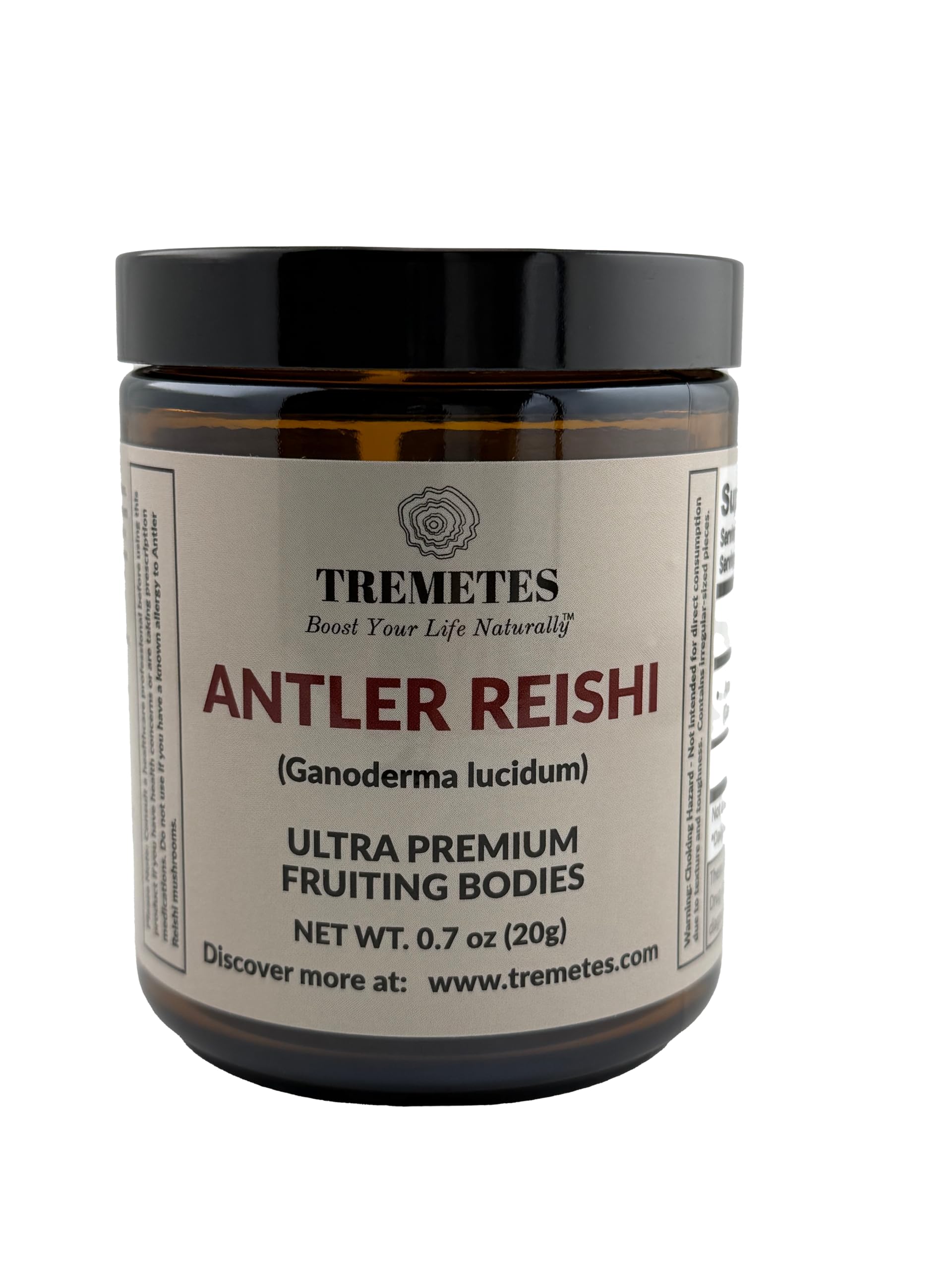 Tremetes Antler Reishi Mushroom Fruiting Body (Ganoderma lucidum) Lab Verified 37.8% Beta-Glucans Adaptogenic Reishi Mushroom Tea Slices for Stress Relief Calm & Vitality Amber Glass Jar