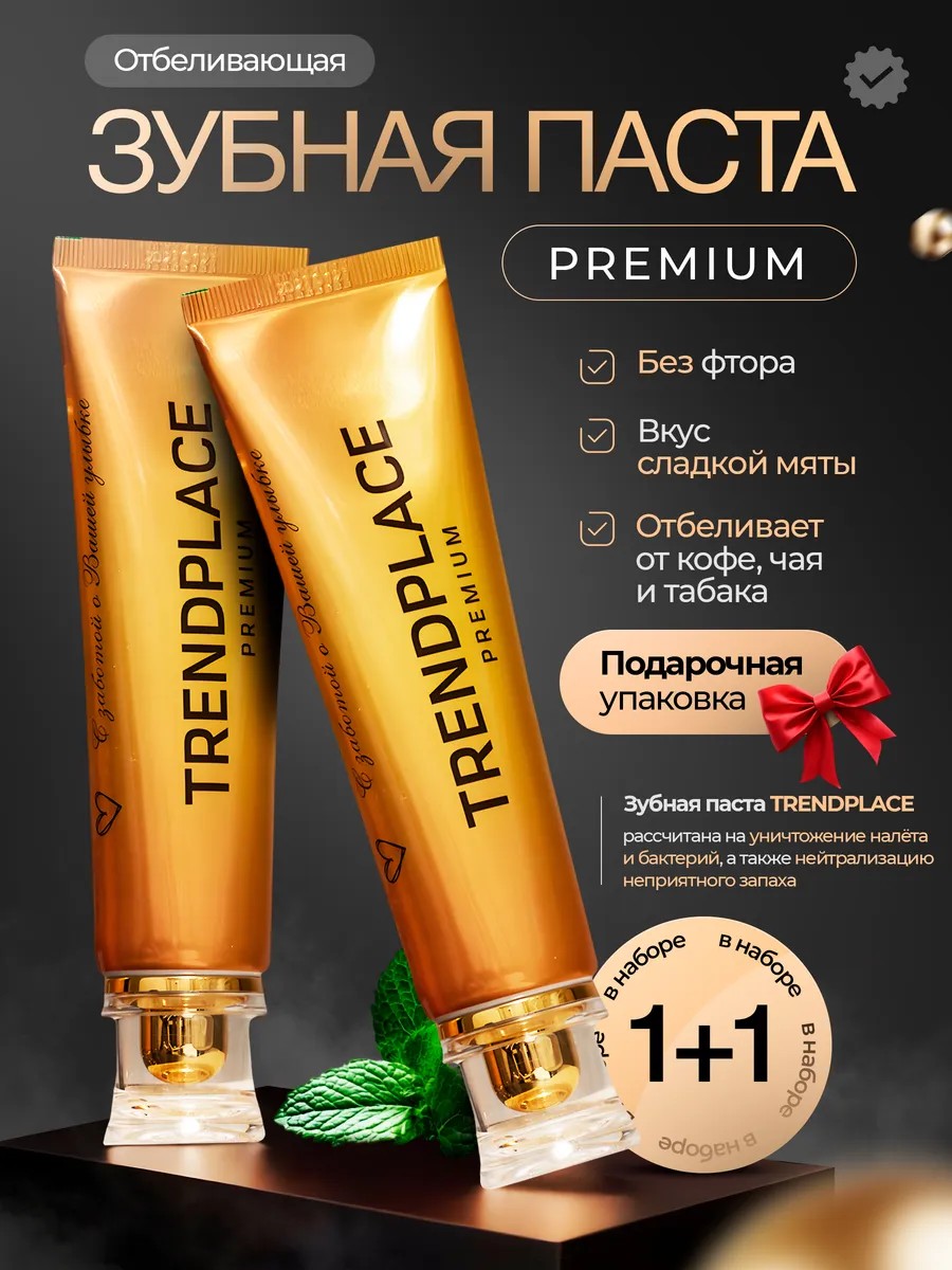 Зубная паста TRENDPLACE - это новый продукт для ухода за полостью рта. Набор состоит из двух зубных паст с нежным мятным вкусом и мягкой кремовой структурой. Наша вкусная паста подходит для ежедневного ухода с отбеливающим эффектом на 1-2 оттенка. Чтобы добиться такого результата, необходимо двухразовое использование утром и вечером. Ультракомплекс активных компонентов в составе пасты обеспечит надежную защиту зубов и десен. Антибактериальная паста рассчитана на уничтожение налета и бактерий, а также нейтрализации неприятного запаха. Освежающий вкус нежной мяты обеспечивает свежее дыхание на долгое время. Профессиональное средство содержит био активные вещества, которые борются с пятнами на зубах, и сопутствуют восстановлению эмали. Органические ингредиенты обеспечивают защиту для зубов и десен, предотвращая развитие кариеса и других заболеваний полости рта. Зубная паста не содержит фтор, что делает ее безопасной для детей, беременных, кормящих женщин и людей, которые хотят избежать ослабления эмали зубов. Гипоаллергенная паста - это комплексный уход с отбеливающими веществами, которые помогают делать удаление и очищение налета на зубах, а так же укрепеление эмали, возникающий у курящих много лет. В результате ежедневного использования нашей пасты Вы увидите улучшение цвета и состоянии своих зубов. Антипаста подходит для всей семьи (взрослый, детский, 6+ и джуниор) возраста, а так же для брекетов. Тюбик пасты с красивой и прочной крышкой удобно брать с собой в дорогу в свой дорожный набор во время путешествий. Подарите себе и своим близким здоровые зубы и белоснежную улыбку! Прекрасный презент с заботой о здоровье для мам и пап, подростков, бабушек и дедушек. Наш продукт не только красота, но и лечебная защита от кровоточивости чувствительных десен, содержащий кальций. 2 шт тюбик (объем 150 мл/200 гр) упакованы в красивую подарочную коробочку. Красивая текстурная хорошая упаковка будет идеальным подарком для людей. Собери золотую и серебро коллекцию для ванны.