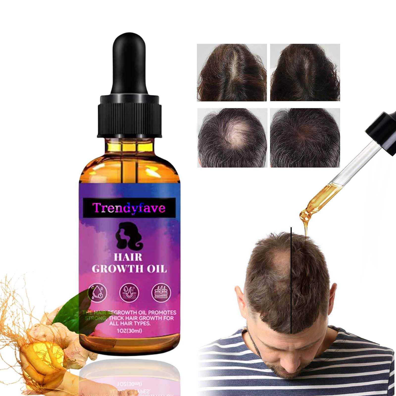 ???????????Trendyfave Hair oils for hair growth contains ginger root and a variety of Chinese herbal plant extracts, they can promote the healthy development of hair and scalp, and the hair becomes dense and supple. Hair Thickening Products for Women Men Benefits: ? Healthy & Gentle - Our hair growth oil is very gentle. Contains ginger and a variety of Chinese herbal plant extracts, without irritation and chemicals. ? Natural Ingredients - Ginger formula works by naturally activating dormant hair follicle germ tissue on the scalp, can promote hair growth, prevent baldness. ? Effective and Powerful- Natural extraction promote the healthy development of hair and scalp. Long-term-use can repair the hair, improve the state of hair loss. ? Nourishing and Repair Hair - Hair scalp oil helps repair damaged hair's surface, strengthens thinning and weak hair, lock in moisture and shine and control frizz. ? Ideal Hair Care Products - Ideal for thinning, slow hair growth, hair loss. It can repairs, softens and strengthens damaged hair effectively. ? Suitable For Everyone - hair regrowth serum is packed with many nutrients that stimulate stronger and faster hair growth effectively on both men and women. Package Contents: Ginger hair growth serum *1 (30 ml). Hair Oil for Dry Damaged Hair Usage Method: 1.Clean your hair before using the ginger oil for hair growth. 2.When the hair is half dry, drop the hair growth oil on the place which needs to grow. (Drip the ginger hair serum on scalp directly would be better.) 3. Then massage with a finger moderate 2-3 minutes until the ginger hair growth serum absorb (No need to shampoo again after use growth hair serum ). Note: 1. Keep out of the reach of children. 2. Store in a cool, dry place. 3. For external use only. Avoid contact with eyes. SAFETY WARNING Keep out of the reach of children. Store in a cool, dry place. For external use only. Avoid contact with eyes.?Solve Various Hair Problems?Postpartum hair loss, hairline backshift, slow hair growth, split ends, thinning hair, perm hair damage, elastic matted hair luster, brittle hair.This all hair types ginger hair oil will promote hair growth effectively, make hair follicle nourishing and active and suppress hair become greasy. ?Easy To Use?Apply hair loss serum on the scalp, massage with fingers for 2-3 minutes until absorbed, and use it 1-2 times a day. Long term use of oil for hair growth to repair hair and improve hair loss. ?Mild & Effective?Hair growth products can not only effectively promote hair growth, repair damaged hair, and nourish and activate hair follicles. It has the effect of cleaning hair, promoting cell regeneration, and balancing sebum secretion. ?Nourishing & Repairing?Ginger hair growth serum can nourish hair follicles and scalp, repair, soften, and strengthen dry, fragile, curly, overworked, and damaged hair.Bid farewell to hair anxiety. ?Scalp Oil for Hair Growth?Stimulate and nourish hair follicles and scalp. Intended to revitalize, strengthen, and protect hair, making it recover, thicken, and last longer.