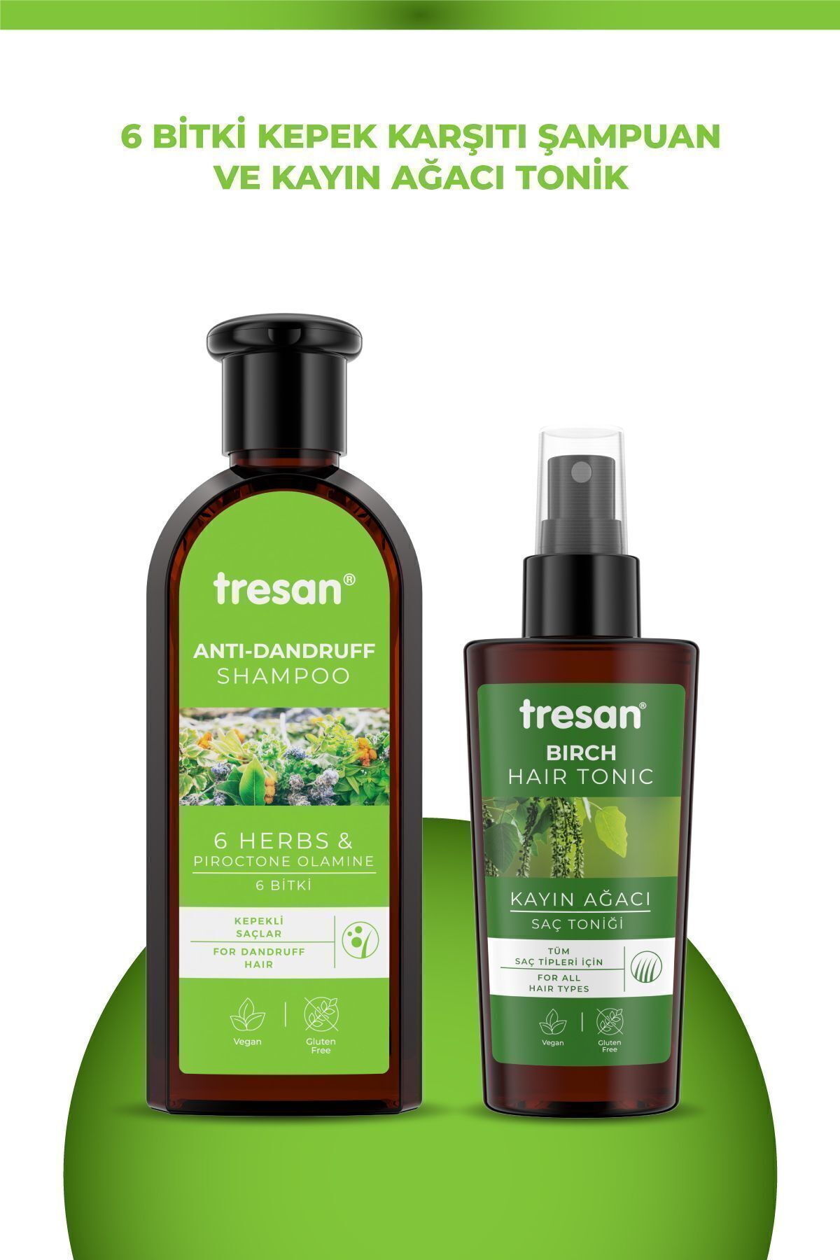 Tresan 6 Herbs Anti-Dandruff Care Shampoo 300 ml Tresan Marjoram Extract Hair Tonic 125 ml.