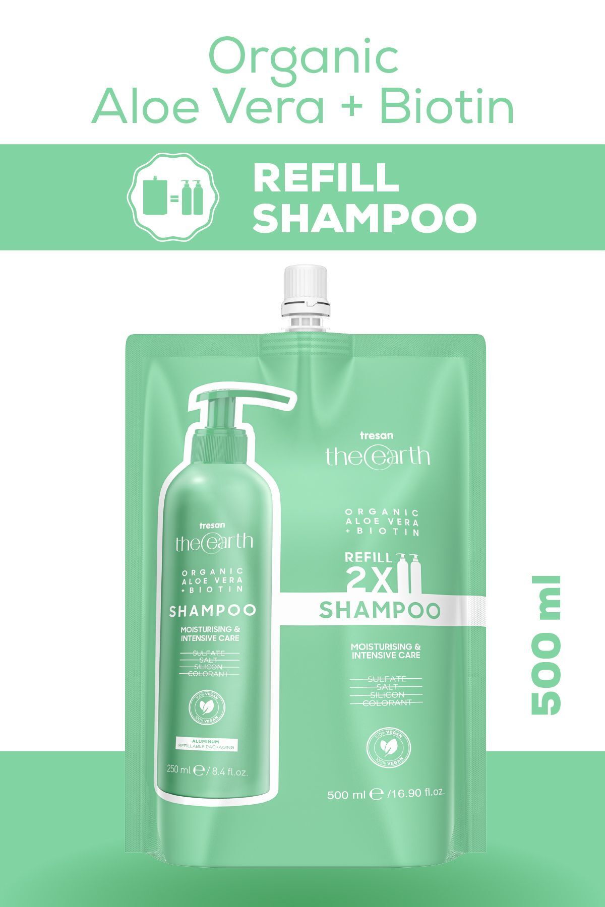 Tresan The Earth Organic Aloe Vera Biotin Shampoo Refill Pouch 500 ml