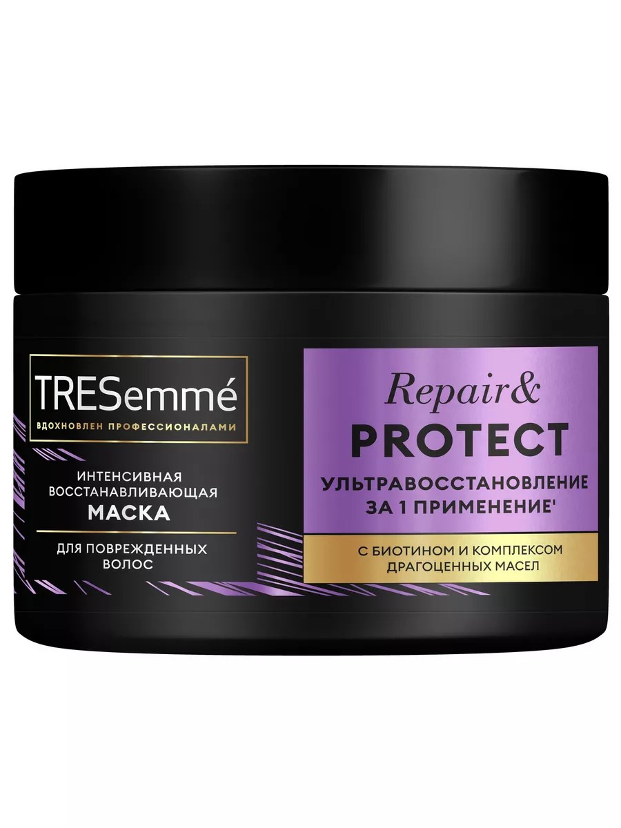 TRESemmé Repair&PROTECT — интенсивная восстанавливающая маска для поврежденных и сухих волос, вдохновленная профессиональными уходовыми средствами. Маска для волос с биотином и комплексом драгоценных масел макадамии и ши дарит видимый результат — ультравосстановление за одно применение!