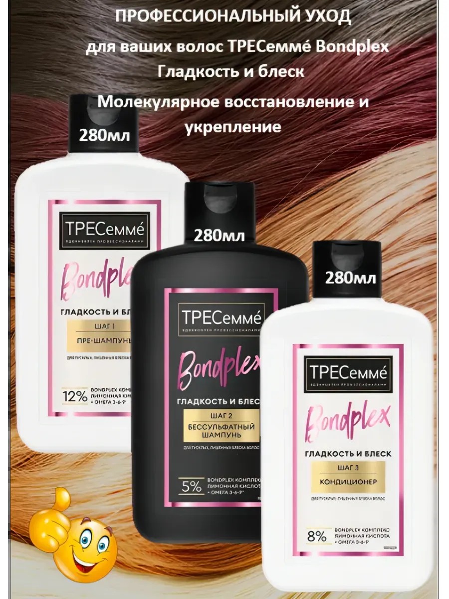Бальзам для ухода за тусклыми и лишенными блеска волосами ТРЕСеммé Гладкость и блеск - это уходовые средства для молекулярного восстановления и укрепления структуры волос. Пре-шампунь, очищающий женский шампунь без сульфатов и бальзам - ополаскиватель для волос мгновенно преображают волосы, создают эффект салонного ухода прямо у вас дома.