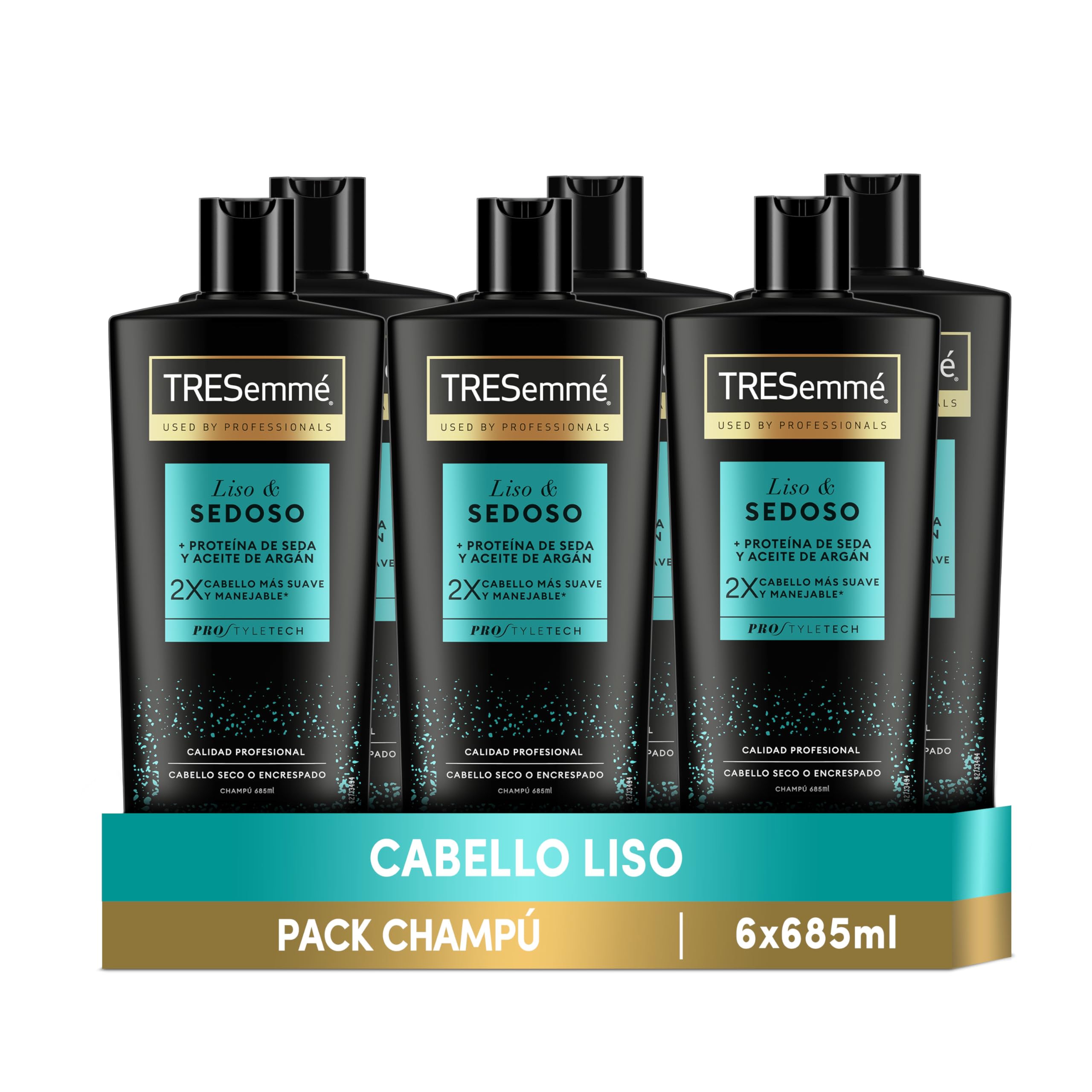 TRESemmé Smooth Silky Shampoo for dry or frizzy hair. Discover the Smooth Silky System, with silk proteins and argan oil, designed to intensely moisturize, tame frizz, and leave hair silky, soft, and smooth. 2x softer, more manageable hair. Hairstylists know that great styling starts with the optimal washing and conditioning base. TRESemmé Pro Style Tech, with amino acids and ceramides, works from within for strong, manageable hair. Apply to wet hair from mid-lengths to ends. Leave on for 2-3 minutes and rinse. Avoid contact with eyes. If contact occurs, rinse thoroughly with water. The conditioner is made with a recyclable bottle and recycled plastic and comes in a family size. To preserve the product, store it in a cool, dry place. Once opened, use within 12 months. At TRESemmé, we understand how your hair gives you the confidence to conquer the world. Because you want to look your best, to feel empowered to shine. TRESemmé knows that great hair gives you the confidence to hold your head high every day. Straight, curly, or wavy hair. Whatever your hair needs, we have the solution to achieve optimal results with quality products and hair treatments. INGREDIENTS Silk protein and argan oil, amino acids and ceramides SAFETY WARNING Avoid contact with eyes. If contact occurs, rinse thoroughly with water. See moreTresemmé Shampooing lisse et soyeux pour cheveux secs ou frisés 685 ml x 6DESCRIPTION DU PRODUIT DESCRIPTION DU PRODUIT Shampooing TRESemmé lisse et soyeux pour cheveux secs ou frisés. Découvrez le système lisse et soyeux, avec protéines de soie et huile d'argan, conçu pour hydrater intensément, apprivoiser les frisottis et laisser les cheveux soyeux, doux et lisses. 2 x cheveux plus doux et plus maniables. Les coiffeurs savent qu'un grand style commence par une base de lavage et de soin optimale. TRESemmé Pro Style Tech, avec des acides aminés et des céramides, fonctionne de l'intérieur pour des cheveux forts et maniables. Appliquez sur cheveux humides du milieu aux pointes. Laissez agir pendant 2 à 3 minutes et rincez. Évitez tout contact avec les yeux. En cas de contact, laver abondamment à l'eau. Le conditionneur est fabriqué avec une bouteille recyclable et du plastique recyclé et au format familial. Pour conserver le produit, conservez-le dans un endroit frais et sec. Une fois ouvert, utiliser dans les 12 mois. Chez TRESemmé comprendre dans quelle mesure vos cheveux vous donnent confiance pour conquérir le monde. Parce que vous voulez que vous soyez aussi beau que possible, pour vous sentir capable de briller. TRESemmé sait qu'un cheveu vous donne confiance pour aller avec la tête haute tous les jours. Cheveux raides, bouclés ou ondulés. Quels que soient les besoins de vos cheveux, avoir la solution pour obtenir le résultat optimal grâce à des produits de qualité et un traitement capillaire. INGRÉDIENTS Protéine de soie et huile d'argan, acides aminés et céramides AVERTISSEMENT DE SÉCURITÉ Évitez tout contact avec les yeux. En cas de contact, laver abondamment à l'eau. Voir plusShampooing TRESemmé conçu avec la technologie PROSTYLE TECH qui contient des acides aminés et des céramides pour cheveux secs ou frisés. Découvrez le système lisse et soyeux, avec des protéines de soie et de l'huile d'argan. Shampooing de qualité qui dompte les frisottis et laisse les cheveux soyeux, doux et lisses. Shampooing lisse et soyeux, 2 x cheveux plus doux et plus maniables. Shampooing pour cheveux secs ou frisés.