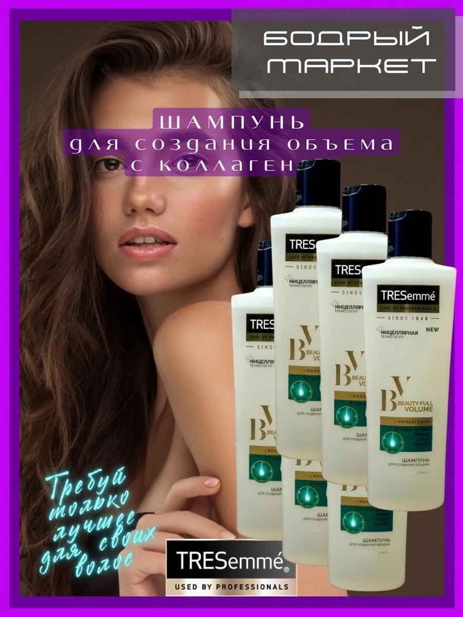 Комплект 6 шт. Шампунь для волос Tresemme Beauty-full Volume для создания объема, 230 мл. Головокружительный объем от самых корней? Попробуй и убедись сама.Формула серии Beauty-full Volume с уникальным сочетанием мицеллярной технологии и коллагена мягко очищает волосы и придает объем от самых корней.Доказанная эффективность: в 2 раза больше объема от самых корней.