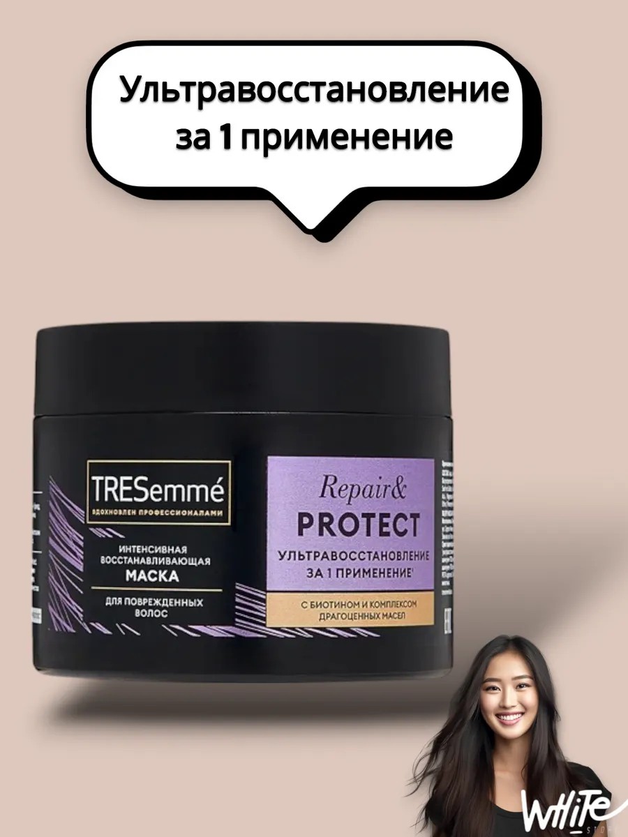 TRESemmé Repair&Protect is an intensive restorative mask for damaged and dry hair, inspired by professional hair care products. This professional hair mask with biotin and a complex of precious macadamia and shea oils delivers visible results—ultra-restoration in just one application! Trust your damaged hair care to TRESemmé: 1. The product strengthens and intensively restores hair from the inside. 2. The special formula of this mask for dry and damaged hair significantly reduces breakage and split ends. 3.