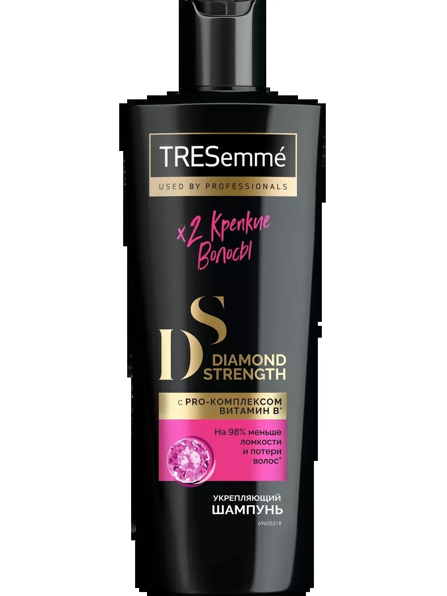 Шампунь для волос TRESEMME Diamond Strength укрепляет волокно волоса по всей длине, борясь с причинами ломкости и выпадения. Результат: на 98% меньше ломкости и выпадения волос. Способ применения: нанесите на влажные волосы, вспеньте, смойте. При попадании в глаза тщательно промойте водой. Три шага к безупречному образу: 1. Шампунь для очищения. 2. Кондиционер для питания. 3. Стайлинг для фиксации TRESemmé.