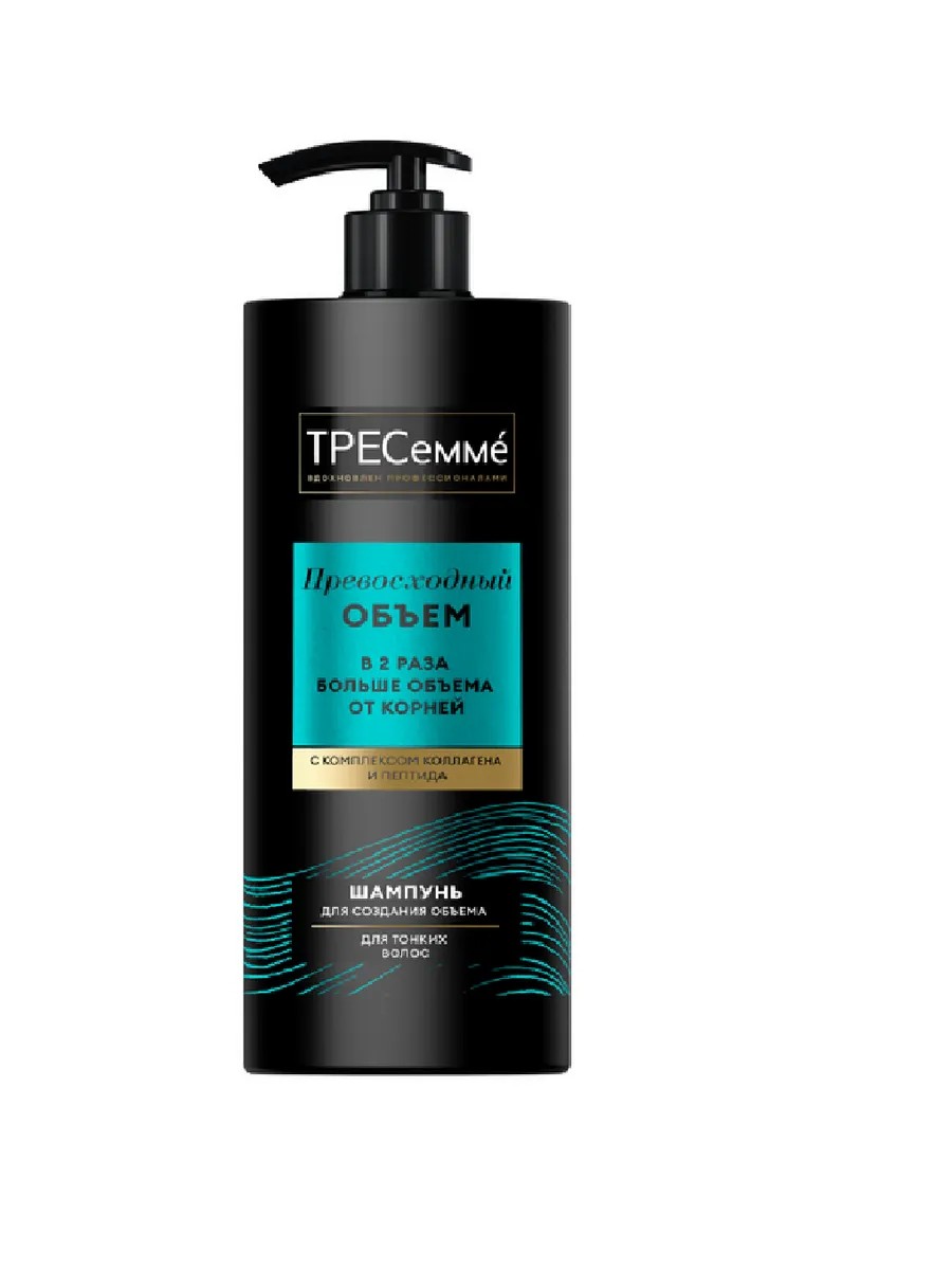TRESemme, Шампунь для волос превосходный объем, 1л. Для объема волос, обогащенный комплексом коллагена и пептида. Шампунь мягко очищает волосы и кожу головы, оказывает ухаживающее действие и обеспечивает видимый результат: в 2 раза больше объема от корней! Шампуня в большом объеме 1 л хватит надолго: каждый день наслаждайтесь объемными, блестящими и ухоженными волосами! 'инструментальный тест Юнилевер: шампунь и кондиционер по сравнению с волосами до мытья. Способ применения продукта : Нанесите на влажные волосы, вспеньте, смойте.