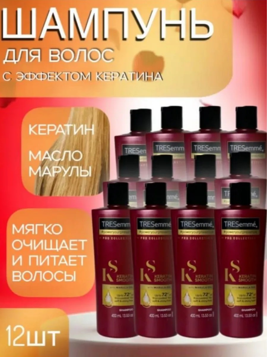 | Комплектация | Шампунь для волос "Тресемме" с эффектом кератина 12шт |