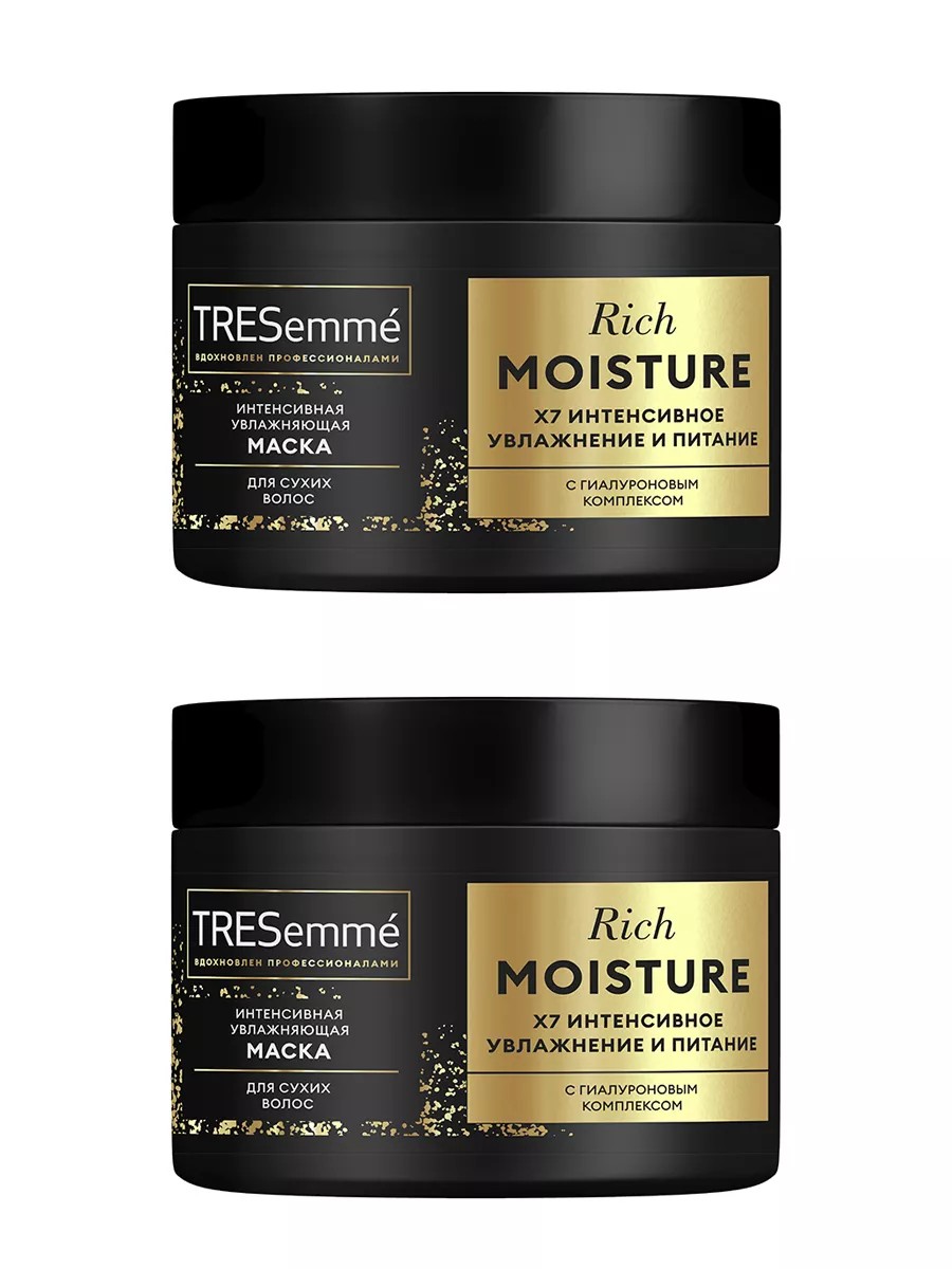 Маска для сухих волос Tresemme Интенсивное Увлажнение. В наборе 2 штуки по 300 мл. Разработана специально для сухих, обезвоженных локонов и обеспечивает видимый результат. Возвращает жизненную силу, придает ослепительное сияние и помогает сократить ломкость. Кремовая текстура легко распределяется и обволакивает каждый волос. Благодаря особой формуле не утяжеляет. Состав обогащен ухаживающими ингредиентами: