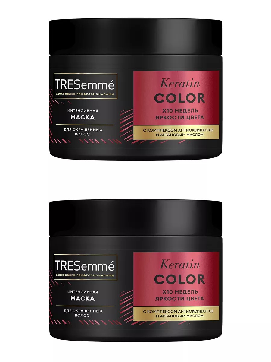 Tresemme Keratin + Color Mask for highlighted and colored hair. The set includes 2 jars of 300 ml. Can be used as three products at once: mask, conditioner, and leave-in treatment.