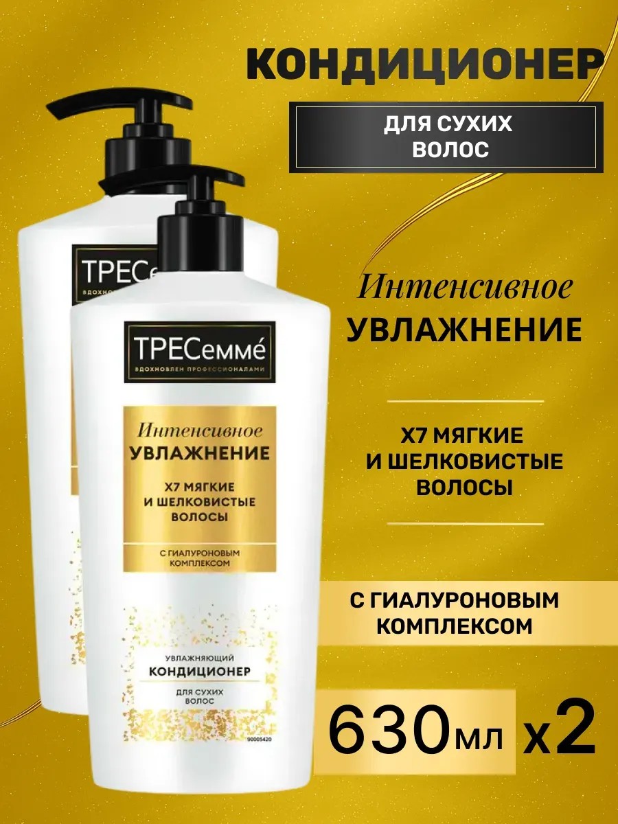 Увлажняющий кондиционер для сухих волос Интенсивное увлажнение TRESemme 2 шт по 630 мл обеспечивает интенсивное увлажнение локонов, делает их мягкими и шелковистыми,