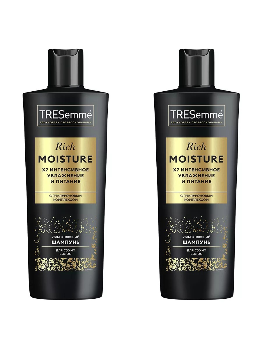 Шампунь для сухих волос Tresemme Интенсивное Увлажнение. В наборе 2 упаковки по 400 мл. Бережно очищает, удерживая влагу в стержне волоса, не вызывает сухость и ломкость.