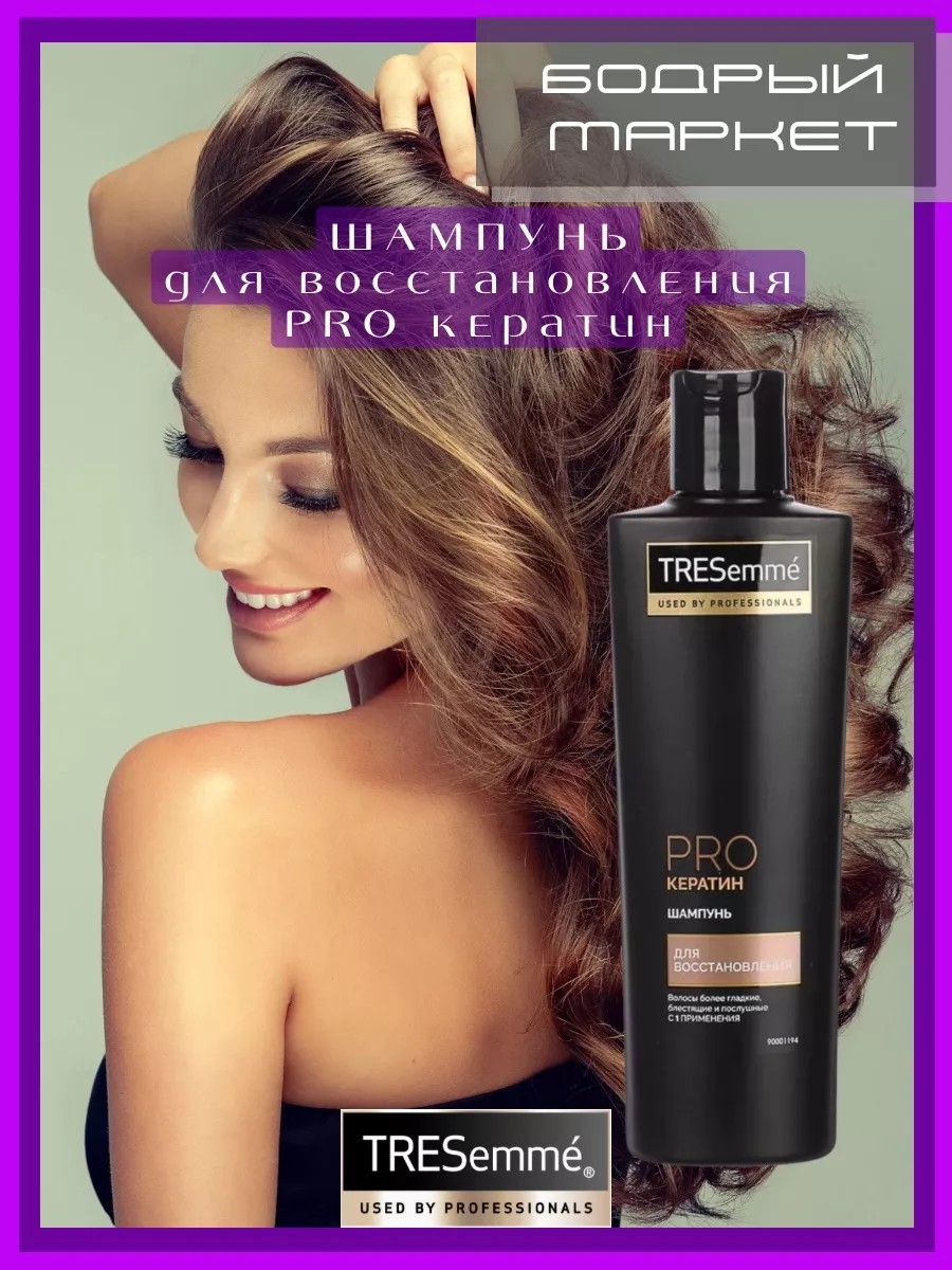 Заметила, что волосы потеряли лоск и силу? Попробуй шампунь и кондиционер из серии Pro Кератин от TRESemmé. Первый шаг – эффективное очищение волос и кожи головы шампунем. • Формула с кератином способствует восстановлению волос; • Придает волосам здоровый блеск; • Придает шелковистость; • Делает локоны более послушными уже с первого применения. Просто нанеси шампунь TRESemmé для восстановления на влажные волосы, немного помассируй, смой, при необходимости повтори. Подходит для регулярного использования. Всего два шага на пути к безупречному образу и ухоженным волосам. Для интенсивного ухода сразу после мытья волос шампунем из серии Pro Кератин используй кондиционер. Шампунь и кондиционер представлены в объеме 200 мл, ими удобно пользоваться не только дома, но и брать с собой в зал или поездку. Попробуй также серию Pro Биотин для яркости цвета и Pro Коллаген для густоты и объема. Профессионалы уверены: каждая укладка зависит от качества волос. TRESemmé – профессиональная основа для создания любого образа. Бренд следует современной концепции в уходе за собой Do it yourself (сделай сама): ты больше не зависишь от стилистов и визажистов! Ведь каждая девушка знает, что подойдет именно ей. Если у тебя под рукой есть качественные средства по уходу и советы от TRESemmé, ты самостоятельно сможешь создать идеальный образ. Пользуйся средствами для волос TRESemmé и восхищай красивыми и ухоженными волосами.Шампунь для волос Tresemmé Восстанавливающий в пластиковой упаковке объемом 200 мл создан специально для восстановления и питания поврежденных и ослабленных волос. Уникальная формула помогает укрепить волосы и защитить их от ломкости, придавая им силу и здоровый вид. Этот шампунь мягко очищает волосы, делая их послушными и блестящими.