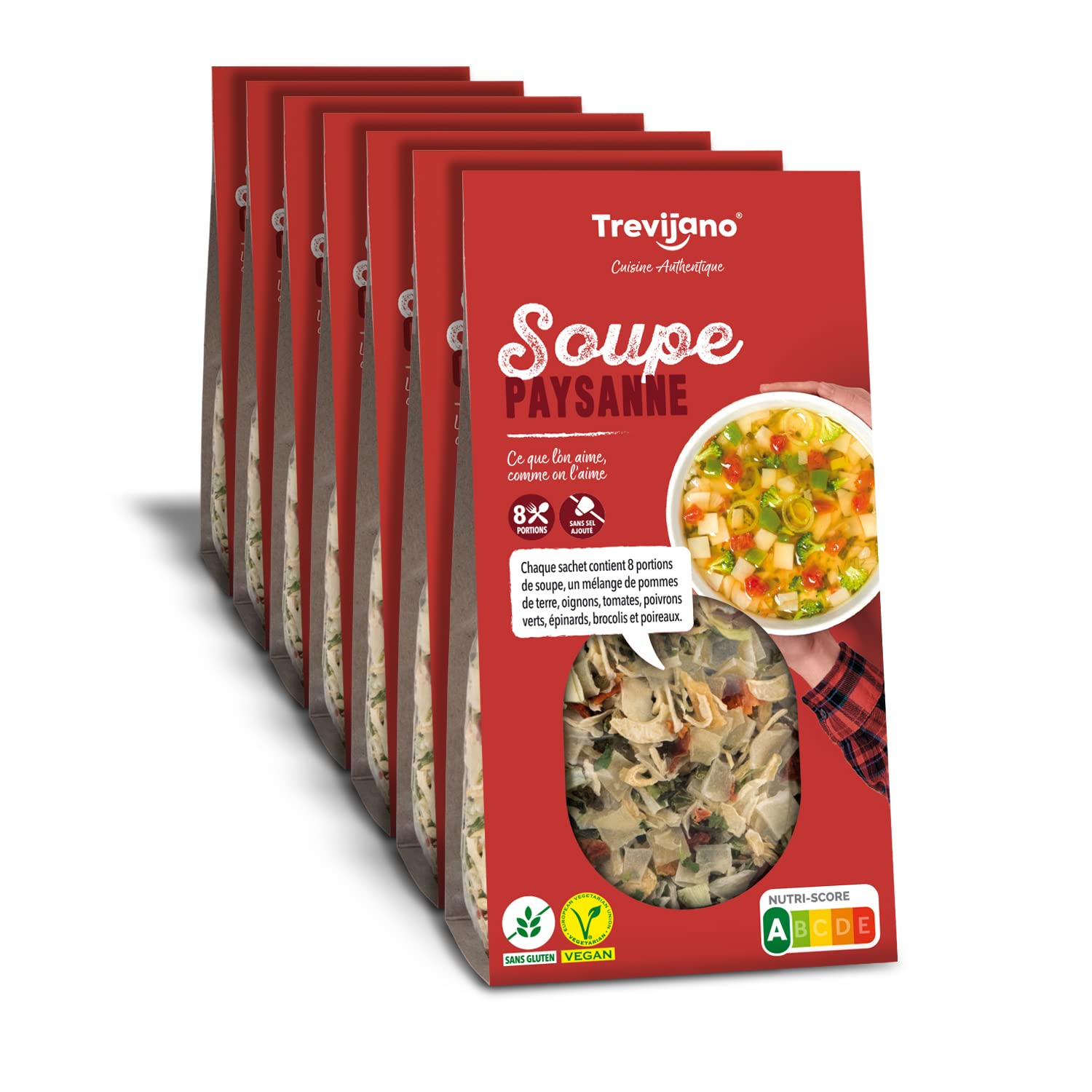 Allergens: May contain traces of sesame, mustard, hazelnuts, and celery. Free yourself from the refrigerator and immediate expiration dates with our Country Soup. It's easy to store and has a long shelf life, allowing you to enjoy its concentrated and delicious flavor at any time. Discover the magic of dehydration: 100g of dehydrated vegetables are equivalent to 1kg of fresh vegetables. A smart and compact way to preserve all the nutrients, without compromising on taste or quality. Dehydration is the oldest and most natural preservation method, as it preserves seasonal ingredients at their best. A unique gastronomic experience with our gluten-free and no-added-salt Country Soup, which contains potatoes, onions, tomatoes, green peppers, spinach, broccoli, leeks. and nothing else. A perfect combination of natural flavors to delight your palate.Allergènes: peut contenir des traces de sésame, de moutarde, de noisettes et de céleri. Libérez-vous du réfrigérateur et des dates de péremption immédiates avec notre Soupe Paysanne. Elle se conserve facilement et a une longue durée de vie, ce qui vous permet de profiter à tout moment de son goût concentré et délicieux. Découvrez la magie de la déshydratation : 100 g de légumes déshydratés équivalent à 1 kg de légumes frais. Une manière intelligente et compacte de préserver tous les nutriments, sans compromis sur le goût ou la qualité. La déshydratation est la méthode de conservation la plus ancienne et la plus naturelle, car elle permet de conserver les ingrédients de saison à leur meilleur niveau. Une expérience gastronomique unique avec notre Soupe Paysanne sans gluten et sans sel ajouté, qui contient des pommes de terre, des oignons, des tomates, des poivrons verts, des épinards, des brocolis, des poireaux. et rien d'autre. Une combinaison parfaite de saveurs naturelles pour ravir votre palais.