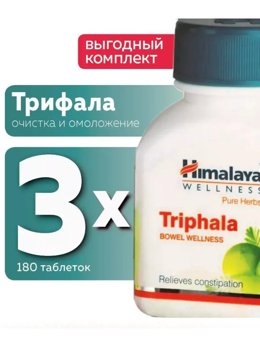 Пищевая добавка Trifala Himalaya Herbals (Трифала Гималаи) – для очищения организма от шлаков и токсинов (детокс для похудения), омоложения, для печени, для очищения кишечника. Содержит плоды индийских целебных растений - амла (амалаки), харитаки, бибхитаки, которые используются как таблетки для похудения или как чистка организма. Аюрведа Индии применяет Трифала для улучшения памяти, работы мозга, как природное (натуральное) слабительное средство, от бессонницы. Отлично чистит кровь, кишечник и печень, нормализует работу ЖКТ, выводит аллергены из организма, нормализует уровень гемоглобина. Трифала – помогает также для очищение кожи, снимает негативные последствия депрессии и стресса, помогает для похудения, улучшения состояния кожи, волос.