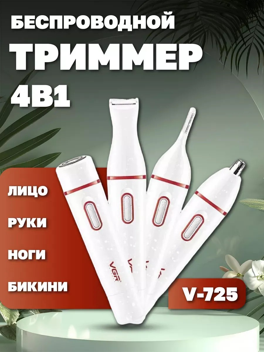 Откройте для себя идеальное решение для удаления нежелательных волос с помощью триммера VGR V-725. Этот универсальный инструмент создан для того, чтобы обеспечить вам гладкую и шелковистую кожу на любом участке тела. С четырьмя сменными головками, он легко адаптируется к вашим потребностям, гарантируя безболезненное и безопасное удаление волос.