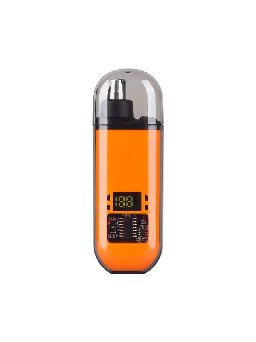 Orange digital display. This mini rechargeable nose hair trimmer is designed for both men and women, easily trimming tiny nasal hairs. Small and portable, easy to carry, maintaining a refreshing appearance anytime, anywhere. It can also be used for women's eyebrow grooming; it's a multifunctional electric shaver that's easy to clean.